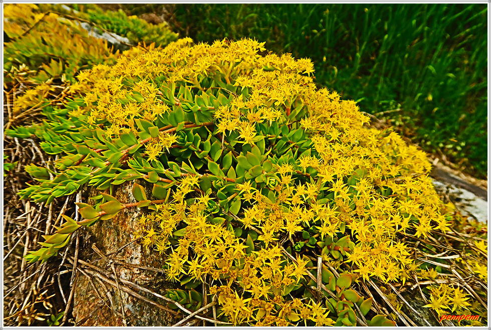 나무계단을 내려와 임도를 걷습니다. 작은 저수지를 지나 진봉방조제를 걸어갑니다. 진봉방조제는 일제강점기인 1924년 완공되었는데 일본은 방조제로 조성된 농경지에서 생산된 쌀을 자국의 부족한 쌀을 보충하기 위해 수탈했으며 이로 인해 식민지 조선은 만성적인 식량부족에 시달렸던 것입니다. 쉼터인 정자와 배수갑문을 지나갑니다. 길섶에는 족제비싸리가 지천으로 보이고 돌나물꽃도 있습니다.
