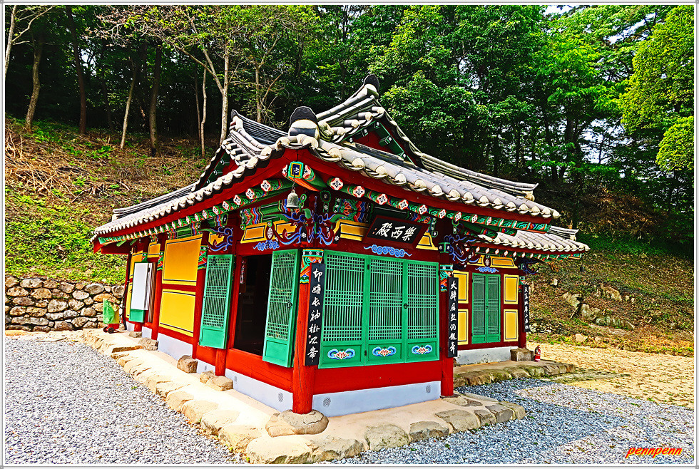 낙서전 좌측에는 탱화가 걸려 있고 그 옆에는 기와와 공양미 및 공양초 불사를 위한 전각이 있으며 뒤쪽 언덕에는 삼성각이 있습니다. 그런데 사찰을 답사하면서 중심 전각인 대웅전을 찾지 못한 건 처음이네요. 이곳은 서해랑길 52코스, 새만금 바람길, 봉화산 숲길이 통과하는 중요한 포인트이기도 합니다.