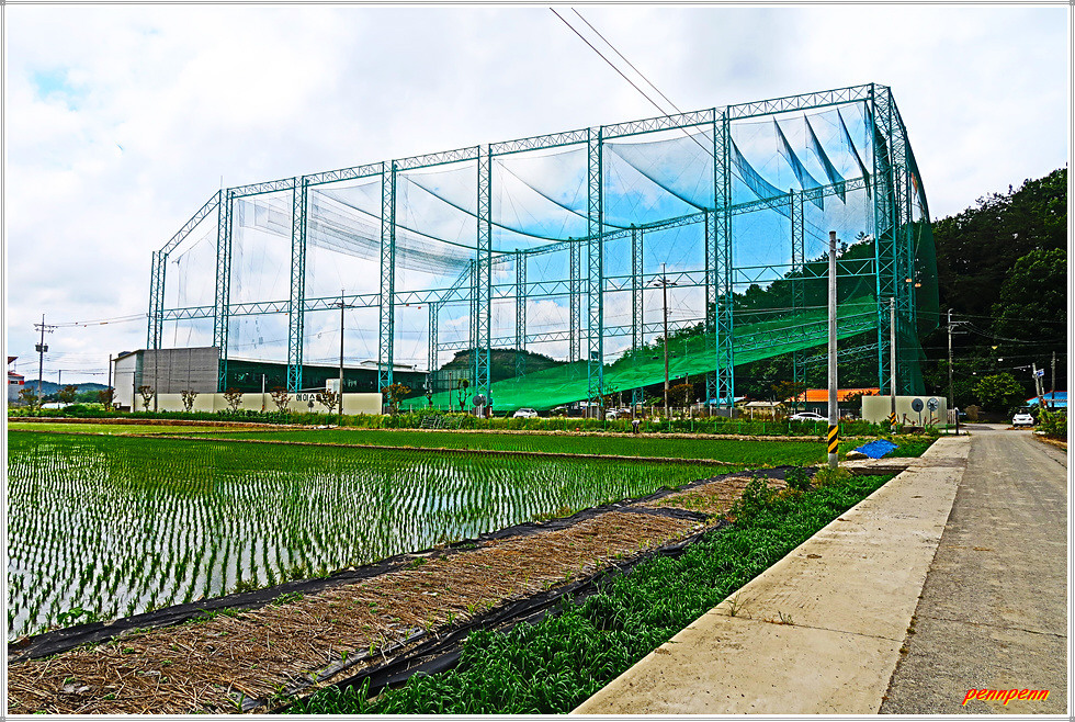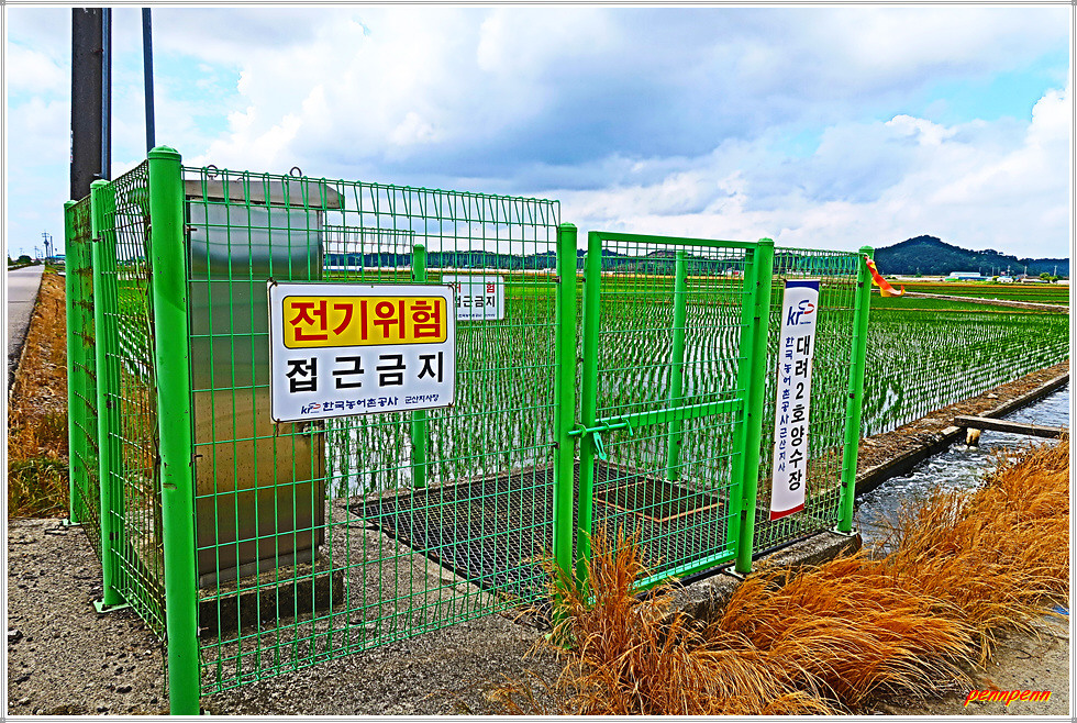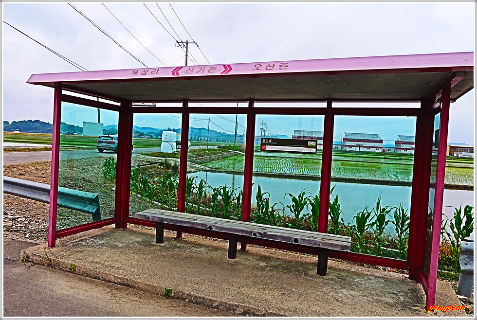현재 지나는 넓은 들판은 석교들인데, 이는 새만금 군산 경제자유구역 군산시 배후지구입니다. 대려2호양수장에서 우측인 서쪽으로 갑니다. 공사 중인 도로를 횡단해 철길을 만나 굴다리를 통과하면 에이스골프글럽인데 여기서 우측으로 가면서 백석, 원당마을 버스정류장과 당북초등학교를 지나면 목적지인 와당사거리 와당버스정류장(옥산면 당북리)입니다.