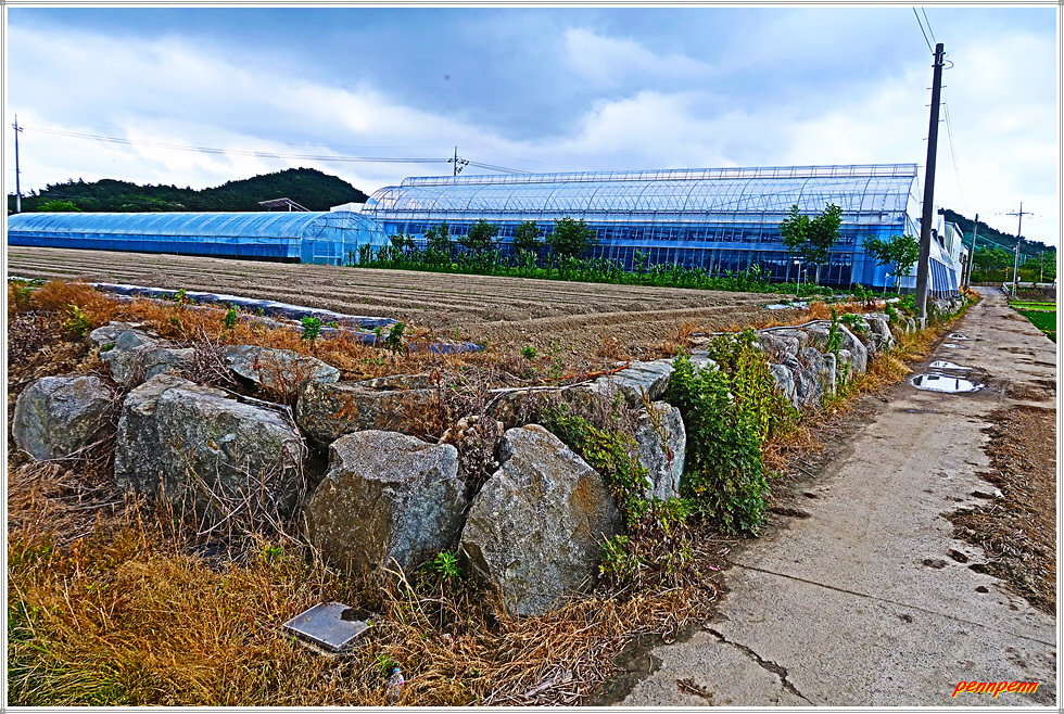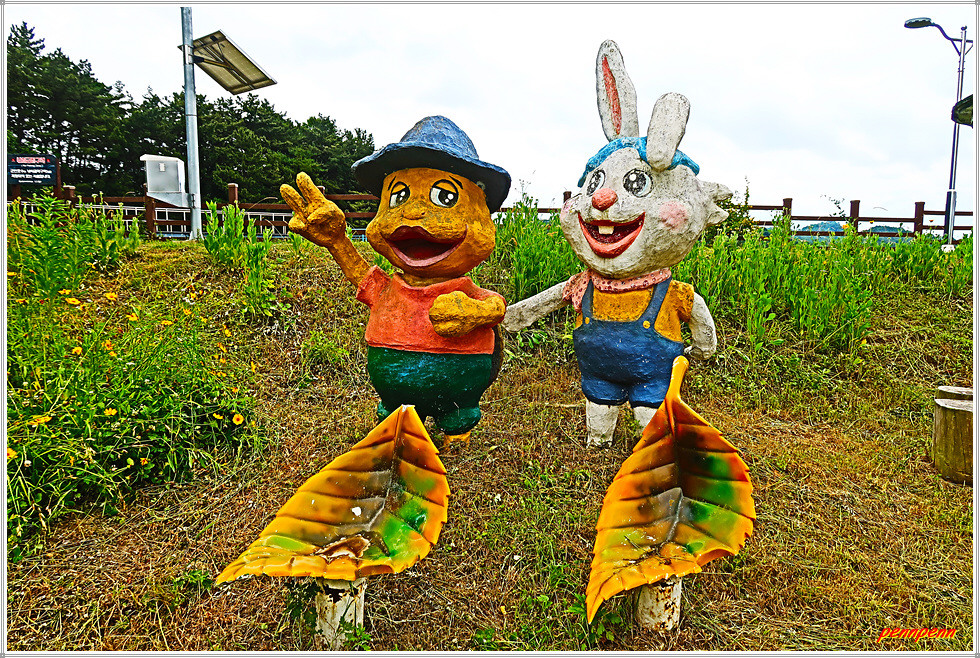 군산호수 제방의 북단에 있는 청암광장에는 “청암산이 좋다”라는 글씨를 세로로 세워 놓은 조형물, 오리와 토끼 같은 귀엽고 앙증맞은 조형물이 조성되어 있어 쉬어가기에 안성맞춤인 휴식처입니다. 청암광장을 나와 주차장을 뒤로하고 수로로 따라 북쪽으로 가다가 중간지점에서 좌측 대형 비닐하우스 방향으로 갑니다. 돌계단에 피어 있는 송엽국은 길손에게는 보너스로군요.