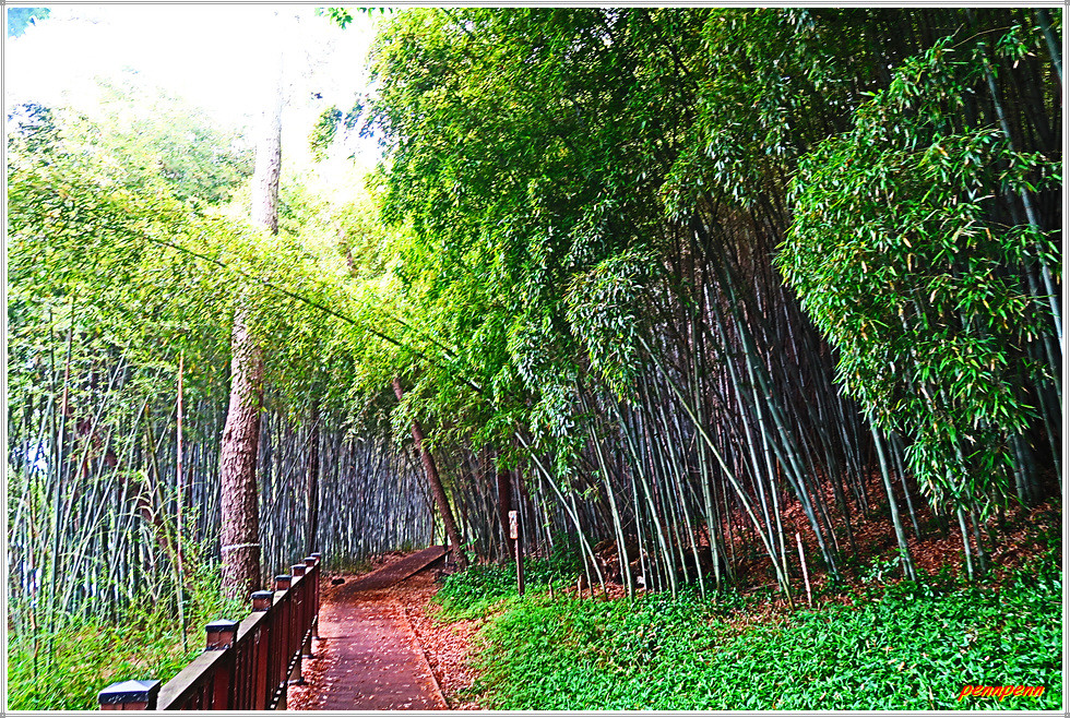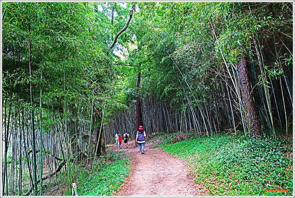 대나무는 이산화탄소 흡수력이 소나무의 4배에 달하는 환경지킴이라는군요. 대나무에 이어 백합나무, 신갈나무, 낙엽송 소나무, 잣나무 순으로 온실가스 절감효과가 매우 크다고 합니다. 대나무는 번식력이 뛰어나고 건축자재나 악기 및 공예품 등의 재료로 사용되며, 최근에는 기능성 식품과 신약개발 연구도 진행 중인 매우 중요한 식물이랍니다. 하트 조형물이 있는 곳은 대나무숲 인증사진 촬영 포인트입니다.