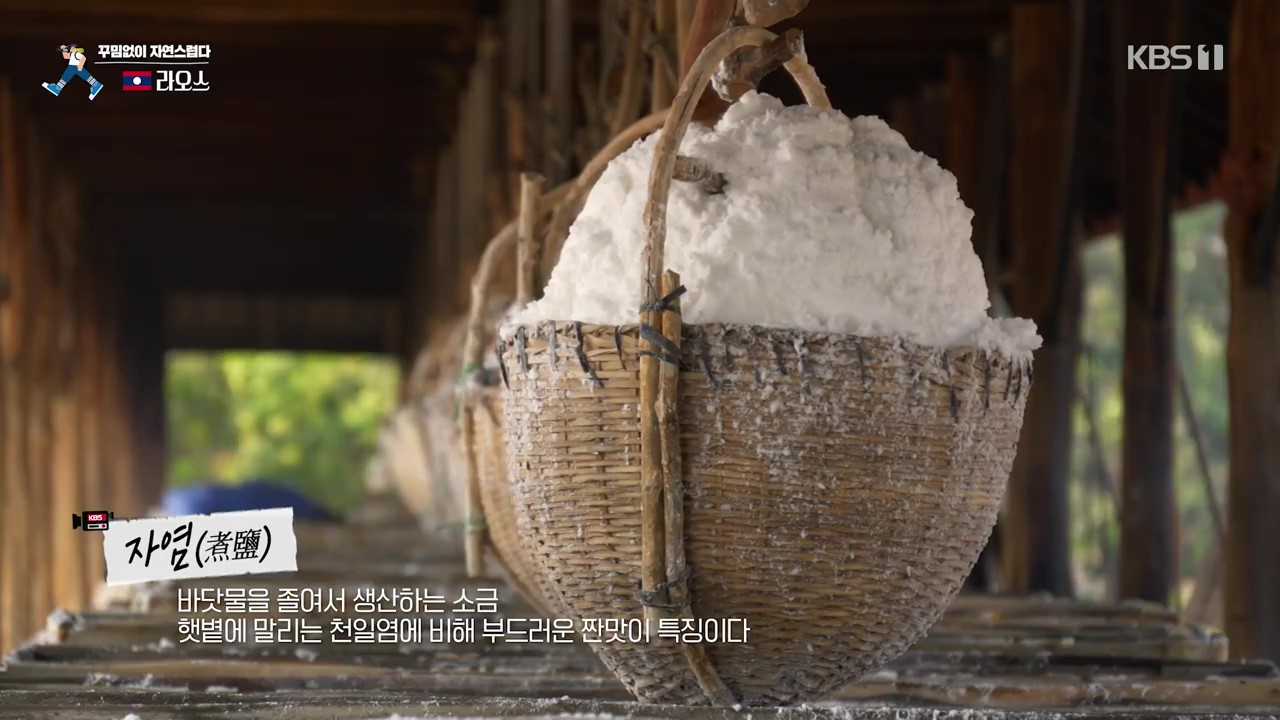 분캄 염전은 바다가 없는 라오스에서 소금을 생산하는 곳으로 지하수를 약 20시간 끓여 소금을 만듭니다. 수만 년 전 바다였던 이곳에는 당시 바닷물이 지하 200m에 있어 이를 퍼 올려 장작불에 20시간 끓이면 소금만 남게 됩니다. 이렇게 만든 소금을 자염이라 부릅니다. 여기서 생산된 소금이 라오스 전국으로 공급됩니다.