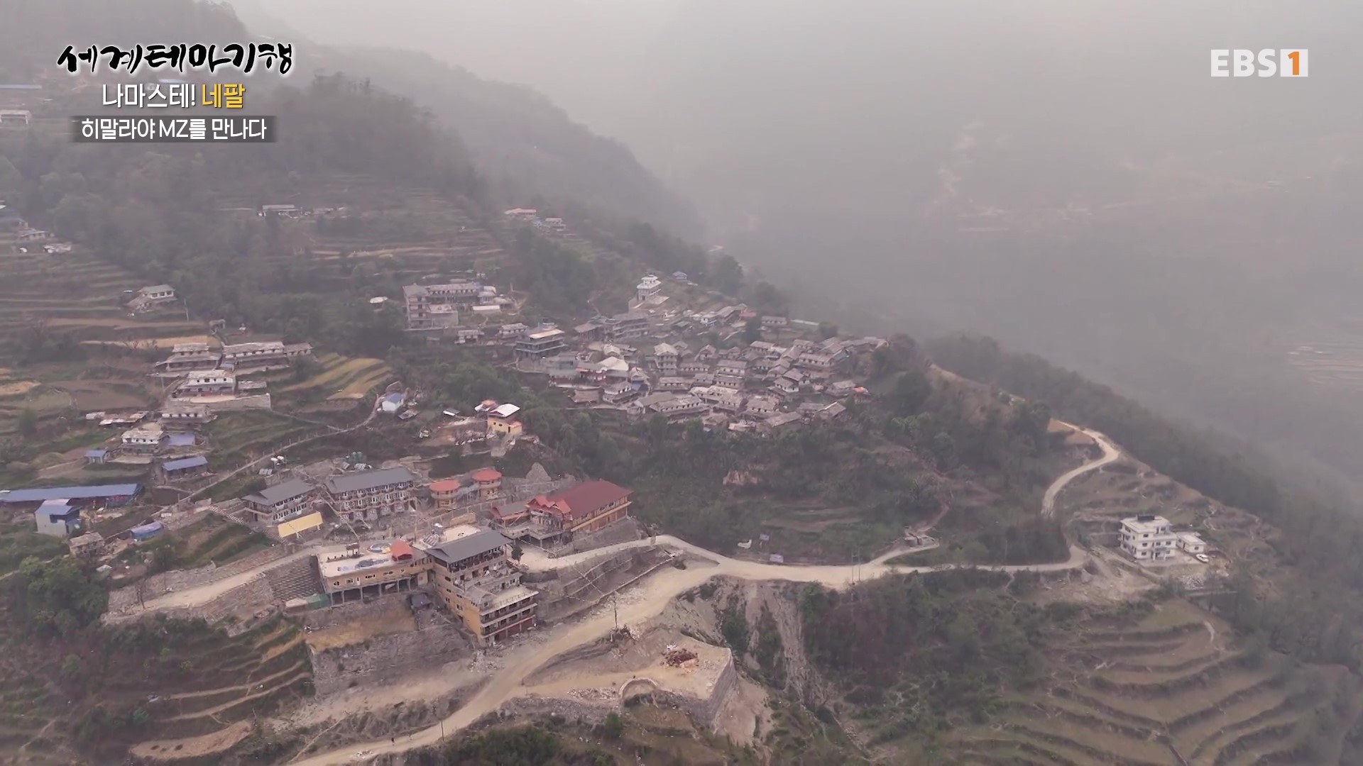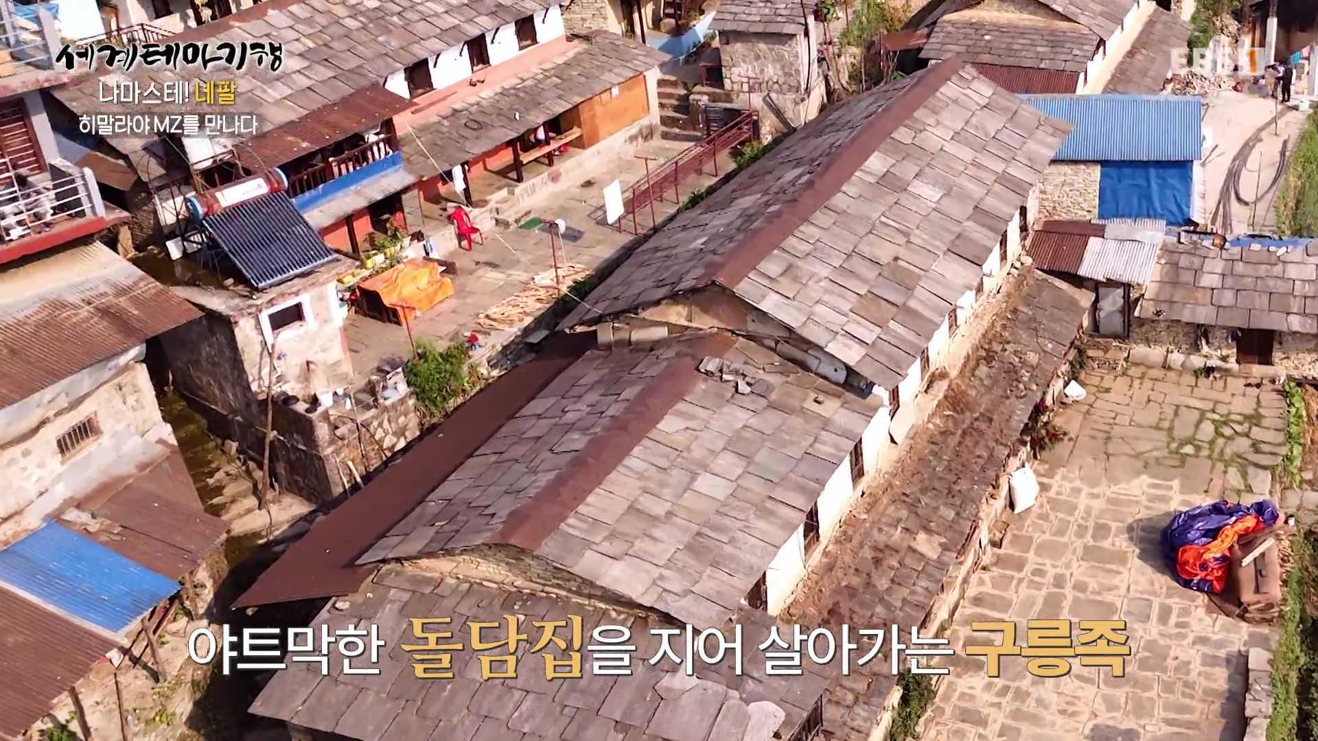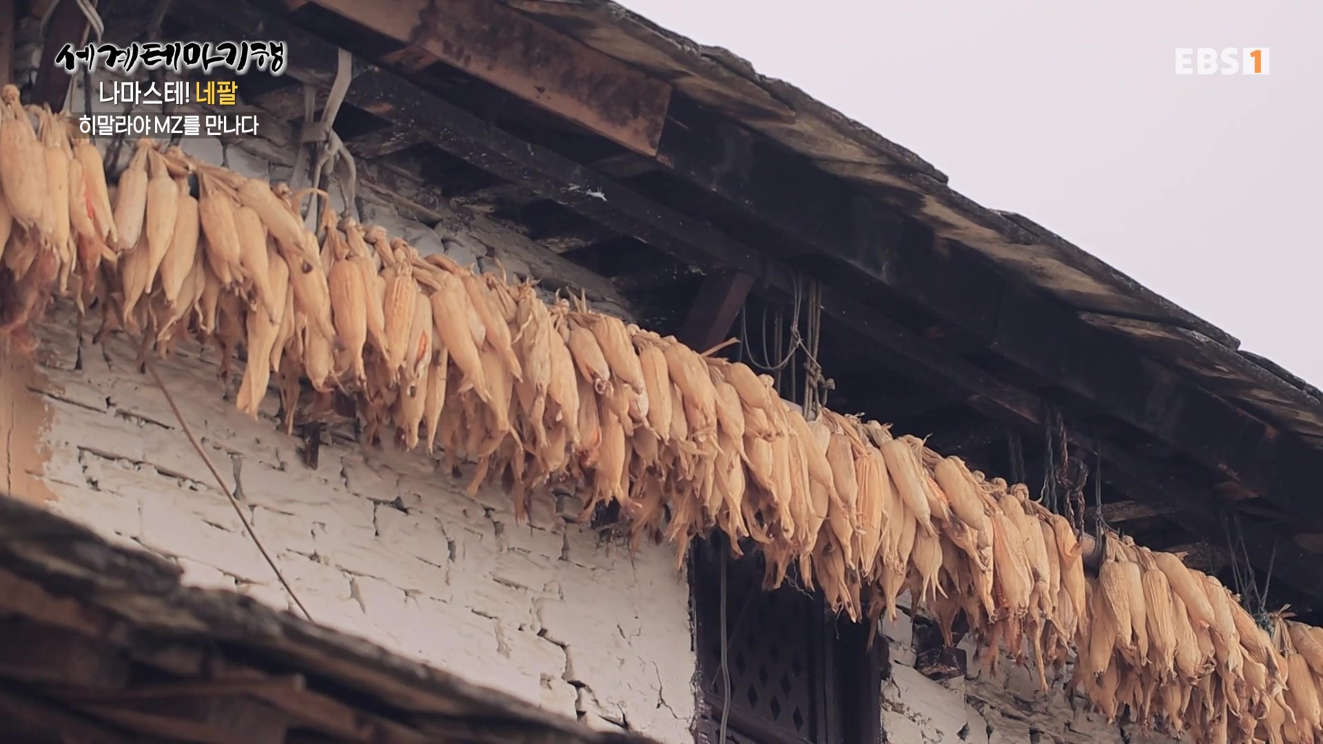 1년 전만 해도 매우 맑았던 하늘이 요즘은 스모그로 설산이 거의 보이지 않습니다. 그래서 취재팀은 결국 등반을 포기하고 포터형제가 거주하는 간드룩마을로 하산하기로 합니다. 대가족을 이뤄 사는 모습도 보기 좋고 처마에 걸어놓은 옥수수는 과거 우리네 시골풍경과 유사합니다. 취재진은 MZ남매의 댄스공연을 보며 설산을 보지 못한 아쉬움을 달립니다.