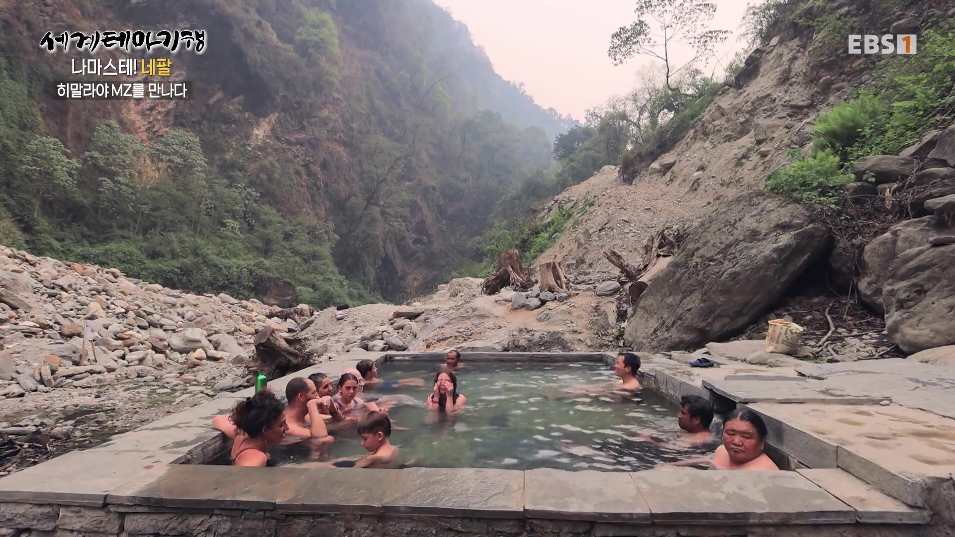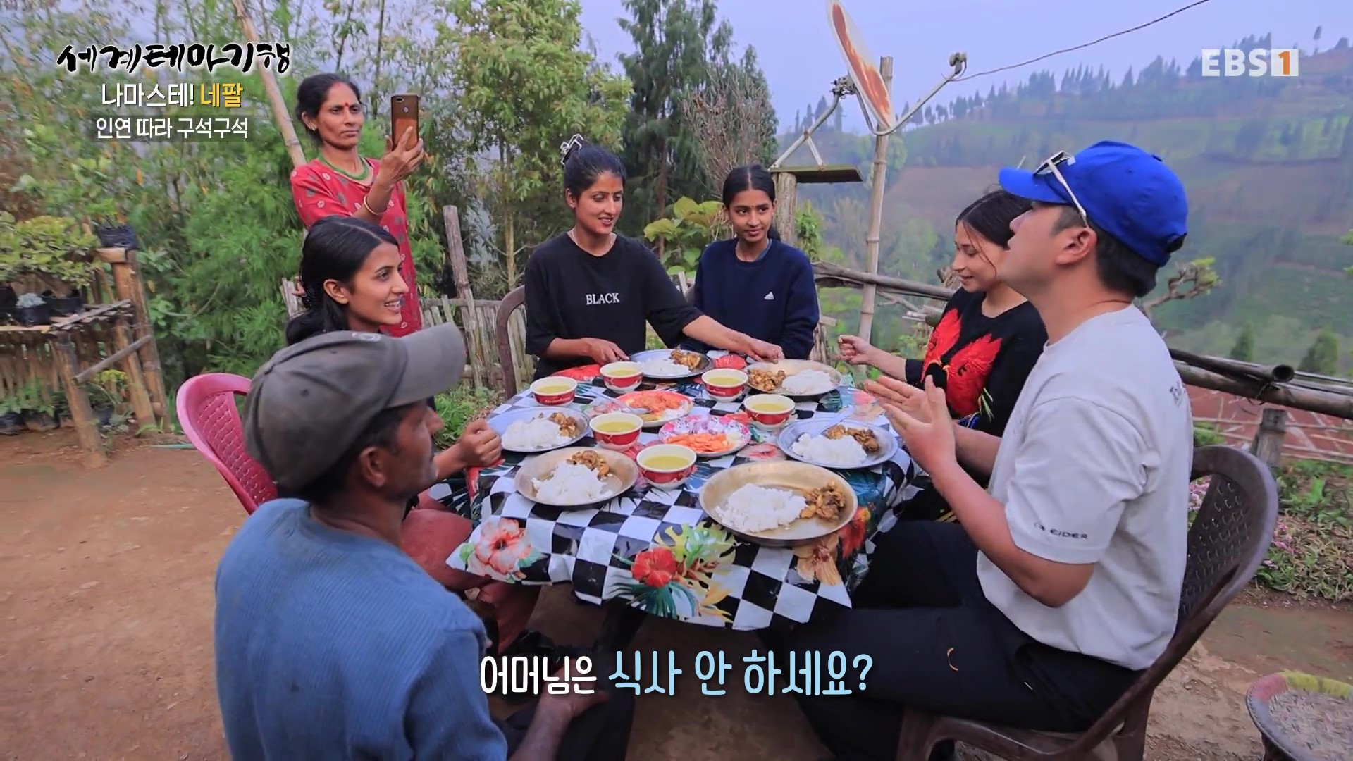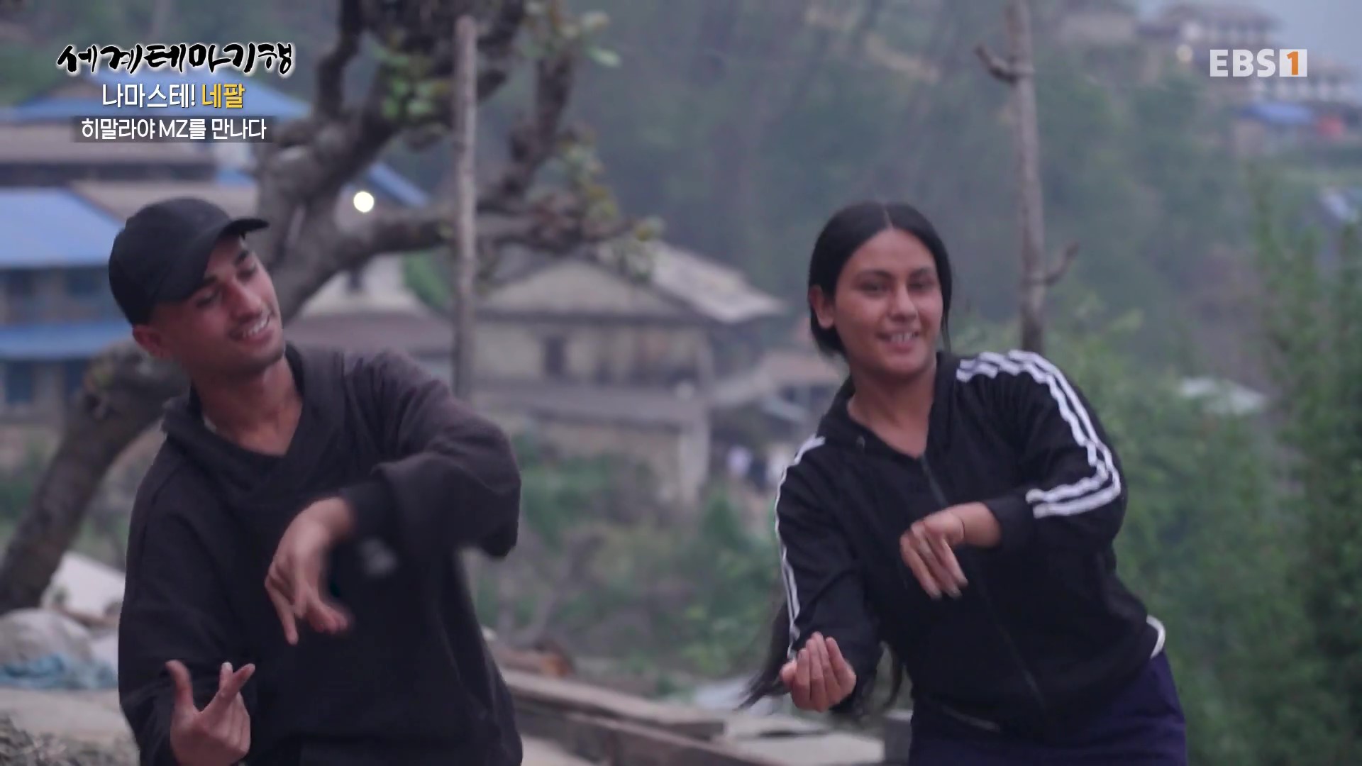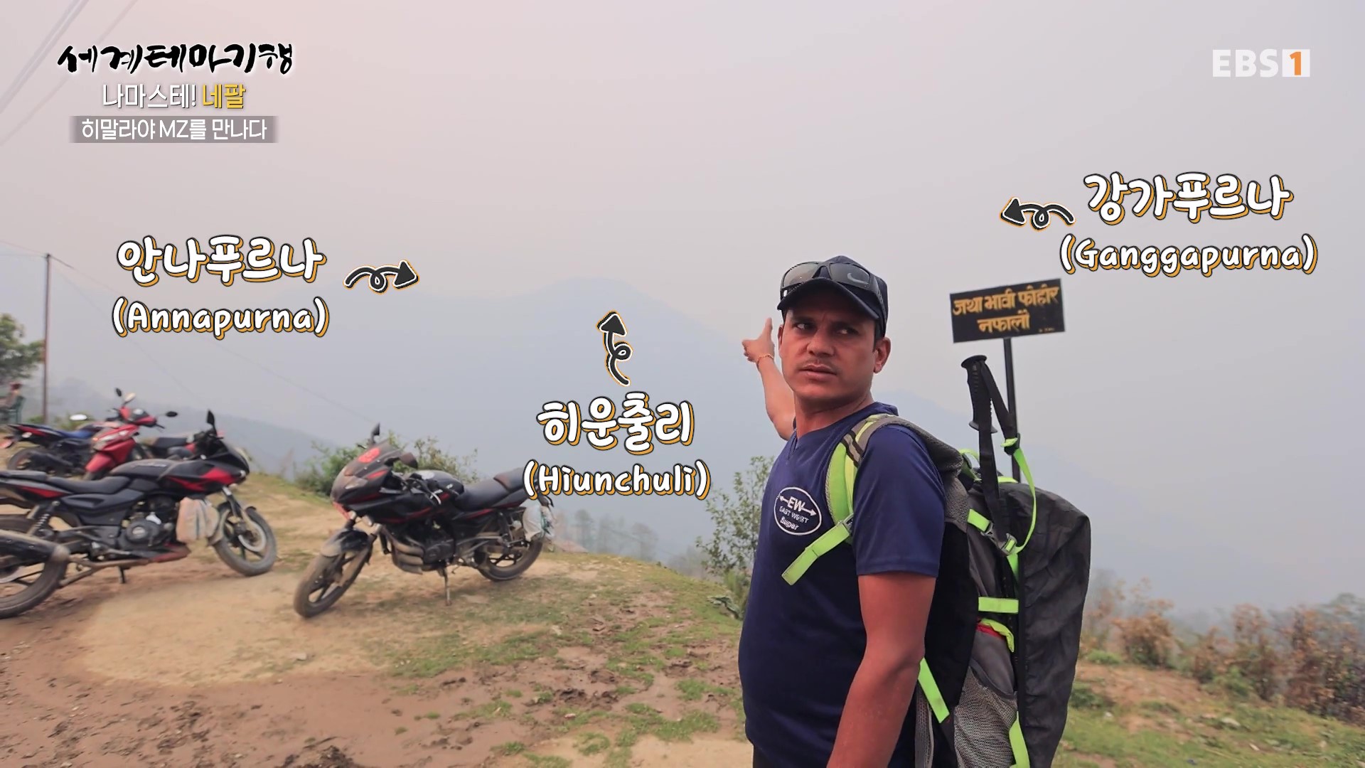 1년 전만 해도 매우 맑았던 하늘이 요즘은 스모그로 설산이 거의 보이지 않습니다. 그래서 취재팀은 결국 등반을 포기하고 포터형제가 거주하는 간드룩마을로 하산하기로 합니다. 대가족을 이뤄 사는 모습도 보기 좋고 처마에 걸어놓은 옥수수는 과거 우리네 시골풍경과 유사합니다. 취재진은 MZ남매의 댄스공연을 보며 설산을 보지 못한 아쉬움을 달립니다.