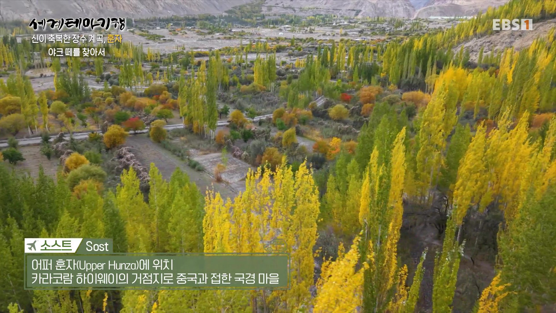 소스트는 위쪽 훈자에 있는 마을로 중국과 국경을 접하고 있으며 카라코람 하이웨이의 끝자락에 위치해 있습니다. 히말라야 아이벡스는 3,000m 이상 고지대 산악지대에 서식하는 야생산양입니다. 고대부터 암각화에 등장할 정도로 신성한 동물입니다. 겨울을 대비해 양들은 해발고도가 낮은 곳으로 이동하고 설산에는 야크가 보입니다. 사람들은 새끼야크를 집으로 데려가고 큰 야크는 야생에 그대로 둡니다.