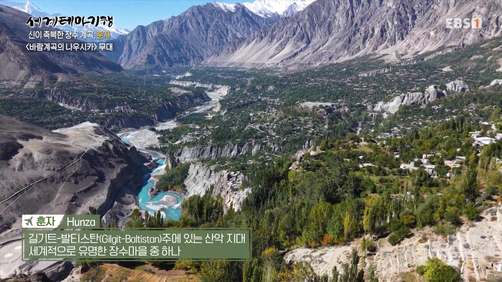 <EBS 세계테마기행>은 안방에 편안하게 앉아서 세계의 명소들을 체험할 수 있는 수준 높은 교양프로그램입니다. 각 방면에 걸쳐 다양한 지식을 가진 전문가가 출연해 실시하는 해설을 따라가노라면 실제로 해외여행을 하는 것 같은 착각에 빠지기도 합니다. 2025. 11. 17∼11. 20 기간 중 “세계테마기행, 신이 축복한 장수계곡 훈자”편이 방영되었습니다. 이번 여행은 이창운 K콘텐츠 개발자가 안내합니다. 훈자가 위치한 나라 파키스탄의 국토면적은 한반도의 3.5배, 인구는 2억 5,522만 명, 수도는 이슬라마바드입니다. 파키스탄은 동서양의 실크로드 한가운데 위치한 문명의 교차로입니다.