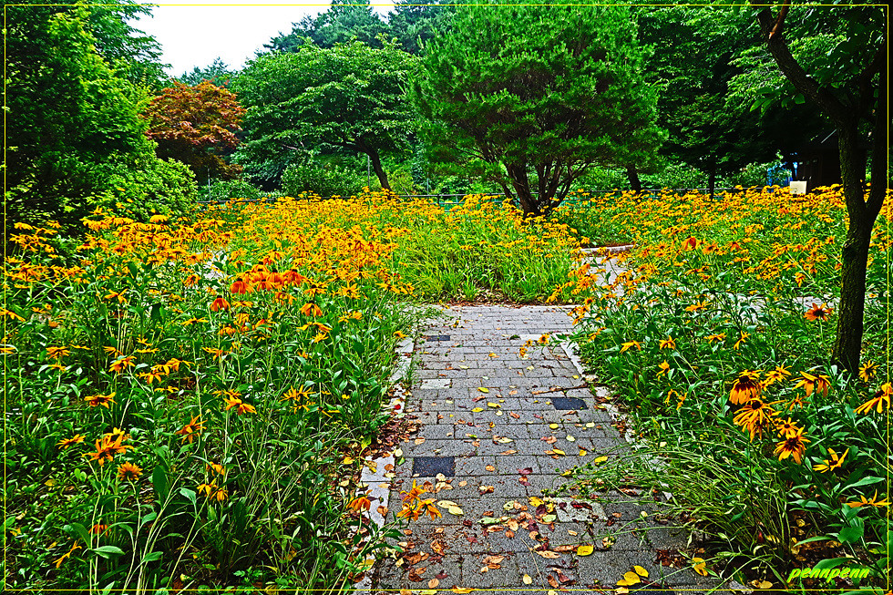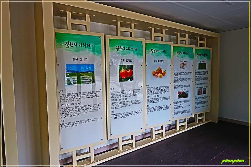 이 조형물 뒤쪽에는 백골부대 홍보관과 철원군 특산물 홍보관이 있습니다. 부대 홍보관에는 백골부대의 연혁과 정신 그리고 백골부대 5대 자랑거리가 기록되어 있군요. 이를 살펴보면 ① 전국 최초로 창설된 사단급 부대, ② 38선 최전선돌파와 국군의 날 제정기원, ③ 전쟁 중 한반도 최북단 진격기록, ④ 전국 유일의 DMZ 완전 작전부대, ⑤ 북한군이 가장 두려워하는 부대로 백골부대는 중부전선 최전방을 수호하는 대한민국 국군의 자존심입니다. 철원특산물홍보관에는 오대쌀, 토마토, 파프리카 등을 소개하고 있네요. 공원의 꽃밭에는 루드베키아가 지천으로 피어 있습니다.