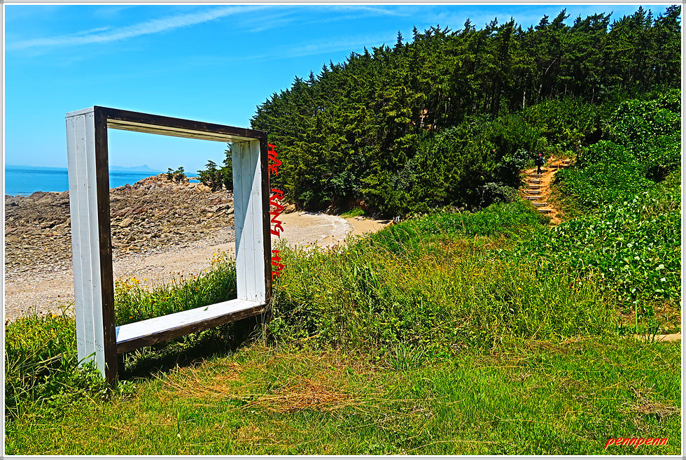 용난굴을 지나 북쪽으로 조금 더 가니 만대항으로 가는 이정표가 나오고 그 다음에는 용난굴 이정표가 있습니다. 해변가에 있는 해랑해카페와 펜션을 뒤로하고 다시 숲으로 진입해 지레너머를 지나 돌앙뗑이에 서니 여섬이 상당히 가깝게 보입니다. 안부로 내려서니 여섬 안내문이 있습니다.