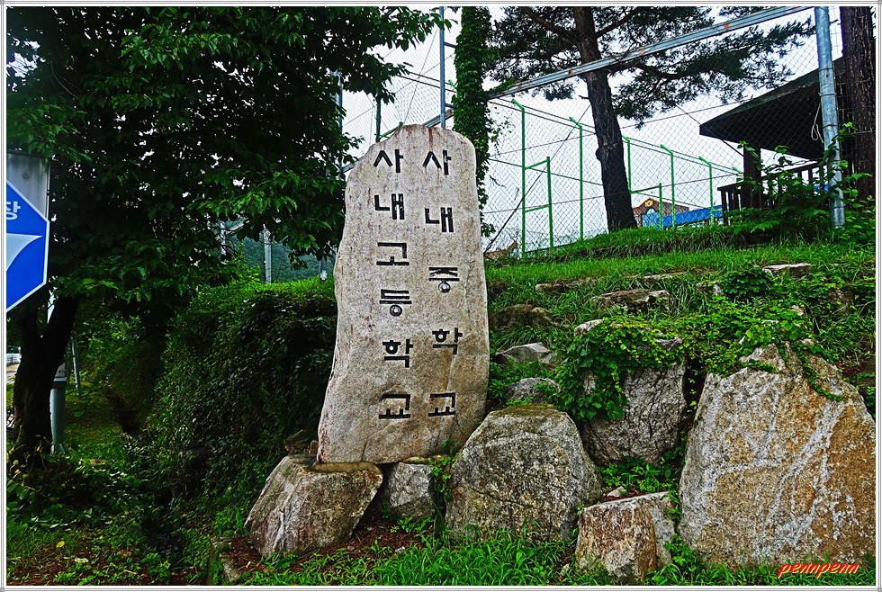 사내중고등학교 정문에서 북쪽으로 갑니다. 사내초등학교 앞과 로터리를 지나는데 면소재지라서 그런지 도로변에는 상가가 제법 보입니다. 한참을 가니 우측 사창천변에는 사내종합문화센터와 사내도서관이 있는데 그 옆에 토마토조각공원이 조성되어 있습니다.