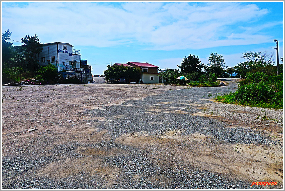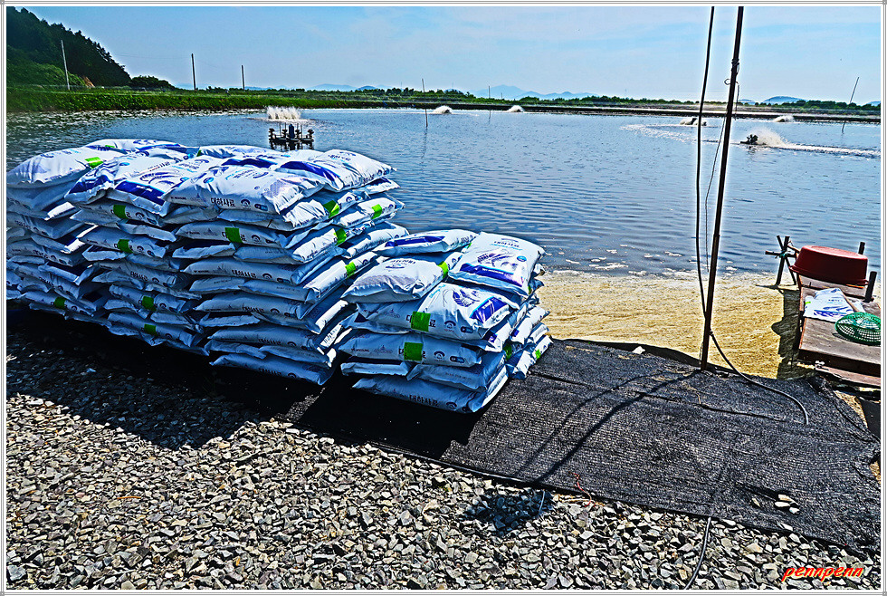 포장된 도로를 따라 가면서 내3리버스정류장, 삼거리갈림길을 지나 점점 고도를 낮추면 38번 국도변의 꾸지나무골 해수욕장입구입니다. 조금 전 통과한 꾸지나무골 유스호스텔에서 이곳까지는 서해랑길 72코스와 중복되는 구간입니다. 38번 국도를 횡단하면 만대어촌체험마을 입구인데, 규모가 상당히 큰 대하(큰새우)양식장이 펼져집니다. 여기서 바닷가로 나가면 만대어촌체험마을입니다.