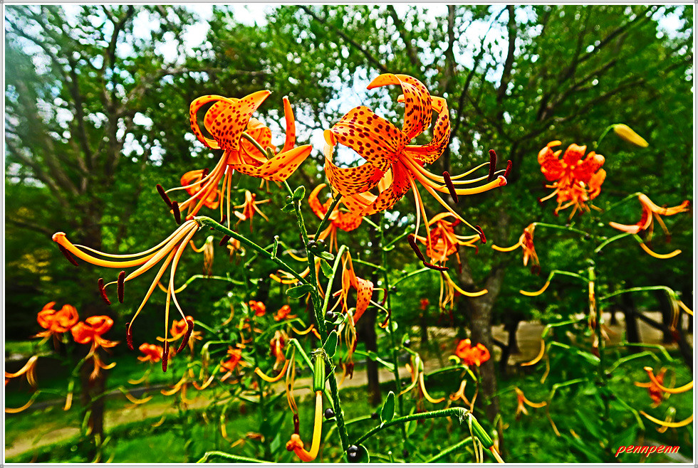 부천 중앙공원을 산책하다가 참나리 군락지를 만났습니다. 이외에도 무궁화, 나무수국, 홑왕원추리, 분홍바늘꽃, 배롱나무 등이 아름답게 피어 있네요.