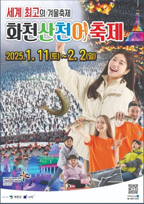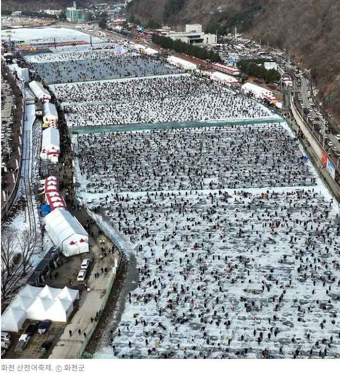 산천어축제의 가장 인기 있는 행사는 얼음낚시로 넓은 빙판장에 직접 얼음을 깨고 낚시로 산천어를 낚는 이벤트입니다. 2011년 미국 CNN방송이 겨울에 열리는 세계7대 불가사의(7 wonders of winter)로 산천어축제가 선정되면서 외국 관광객들도 많이 찾는 행사입니다.