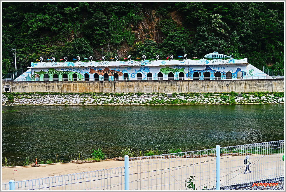 이곳을 둘러보고 동쪽 화천초등학교 방면으로 나와 화천천변으로 내려섭니다. 이곳 화천천은 매년 산천어축제가 열리는 곳입니다. 화천군 화천읍 아리 소재 얼음나라 화천 산천어축제는 화천군 소재 화천천에서 매년 1월 개최하는 산천어 관련축제로 산천어를 잡는 얼음낚시를 비롯해 눈썰매, 눈조각, 봅슬레이, 빙상장 등이 마련되어있어 참가자들은 다양한 체험을 할 수 있습니다. 2003년부터 개최되어 매년 1월 20여 일간 열리며, 이는 차가운 계곡바람과 깨끗한 물 때문에 전국에서 가장 빨리 얼음이 어는 지형적 특성 때문에 가능합니다.