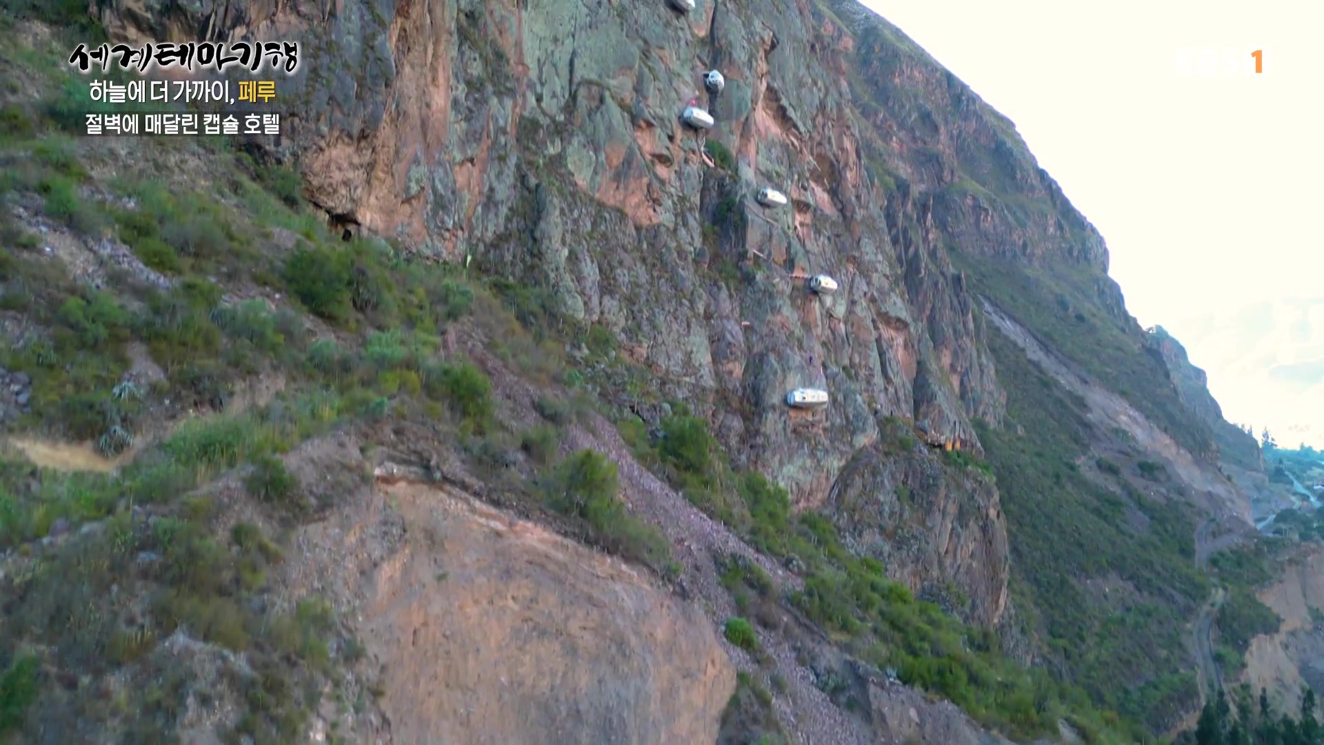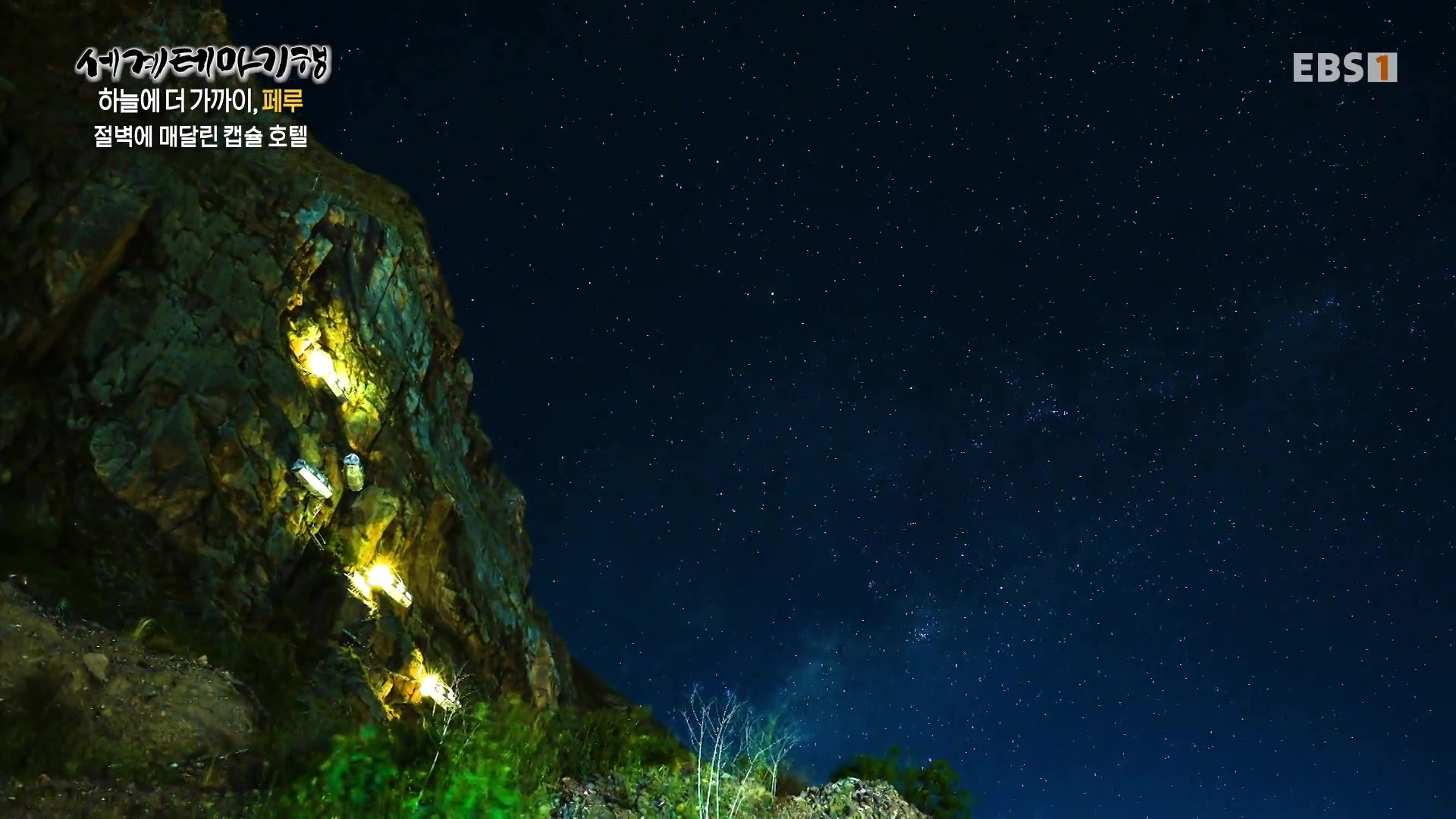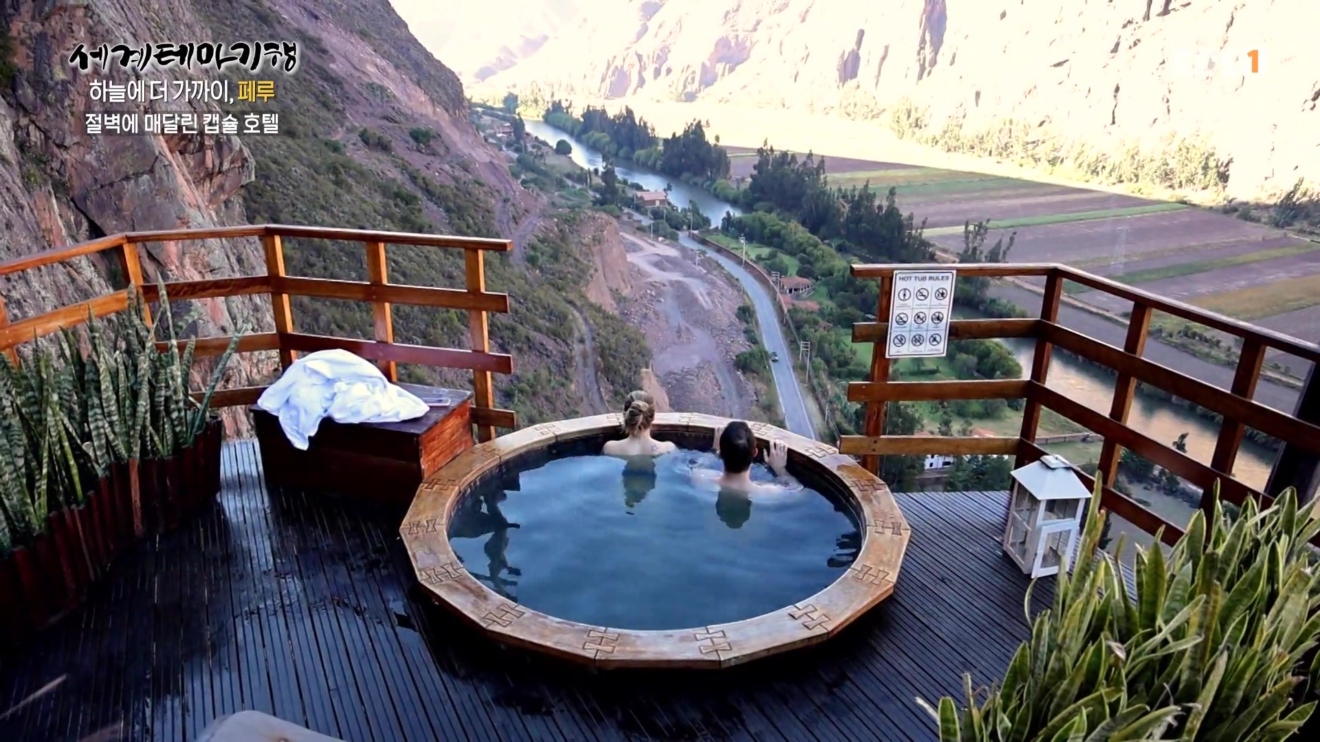 염전 인근의 성스러운 절벽에는 캡슐형 숙박시설이 있는데 높이 500m의 절벽에 매달린 캡슐호텔입니다. 흔들다리와 급경사구간을 올라 호텔에 도착했는데 침실과 화장실 등 있을 것은 다 있고 조망이 끝내줍니다. 지상의 식당에서 단호박스프와 치킨으로 배를 채우고 다시 절벽호텔로 올라가 쏟아지는 별빛을 보며 밤을 보냅니다. 다음 날 아침 절벽의 온수탕에서 몸을 녹이면 신선이 따로 없습니다.