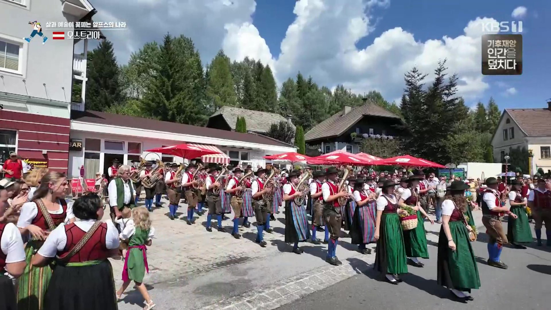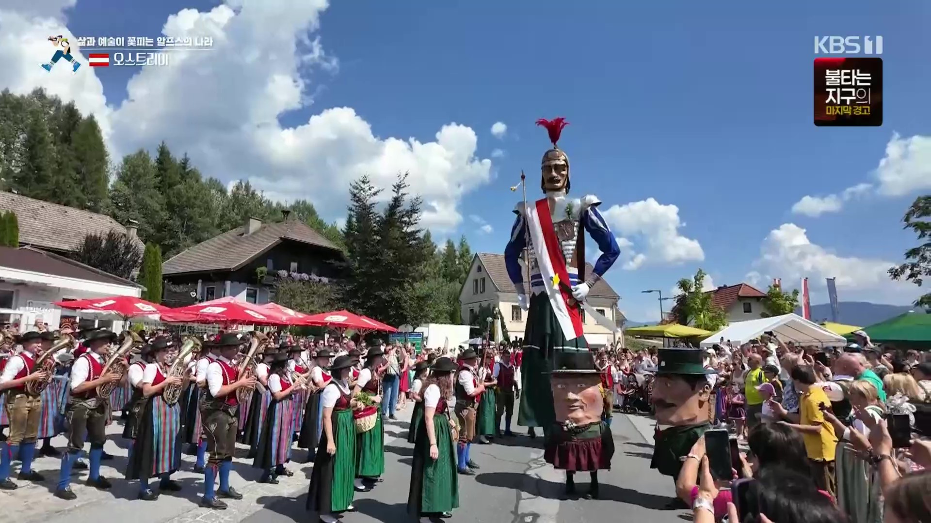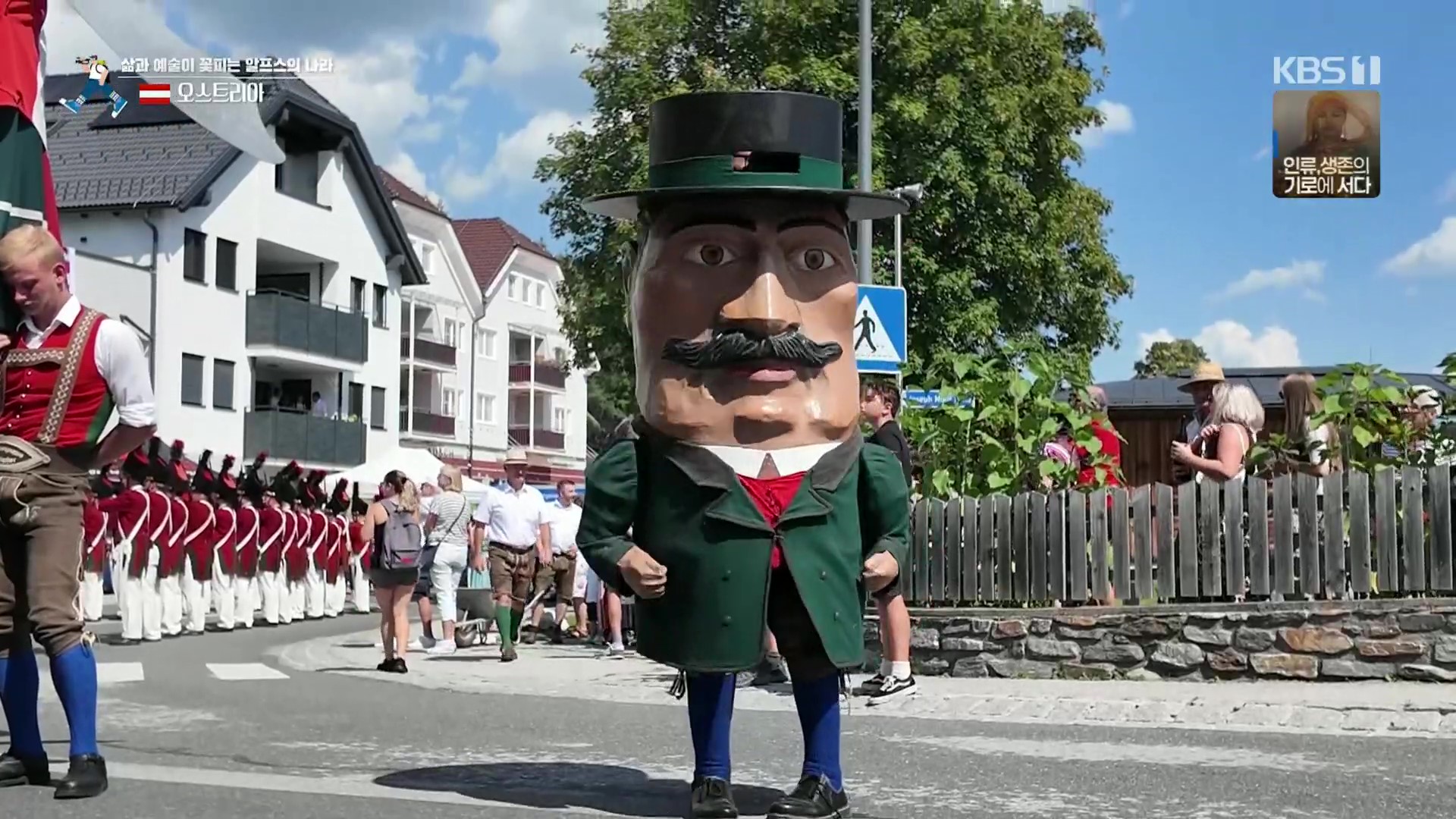 마리아프파르는 잘츠부르크 룽가우지역의 작은 마을(인구 2,500여 명)로 마침 마을축제가 열리고 있습니다. 성모 승천 대축일을 맞이해 거대한 삼손인형을 비롯한 음악대와 전통의장대가 거리행진을 시작하네요. 삼손인형의 무게가 무려 100kg 이라는데 성인 1명이 이를 들고 행진하는 것도 대단한 묘기(?)입니다.