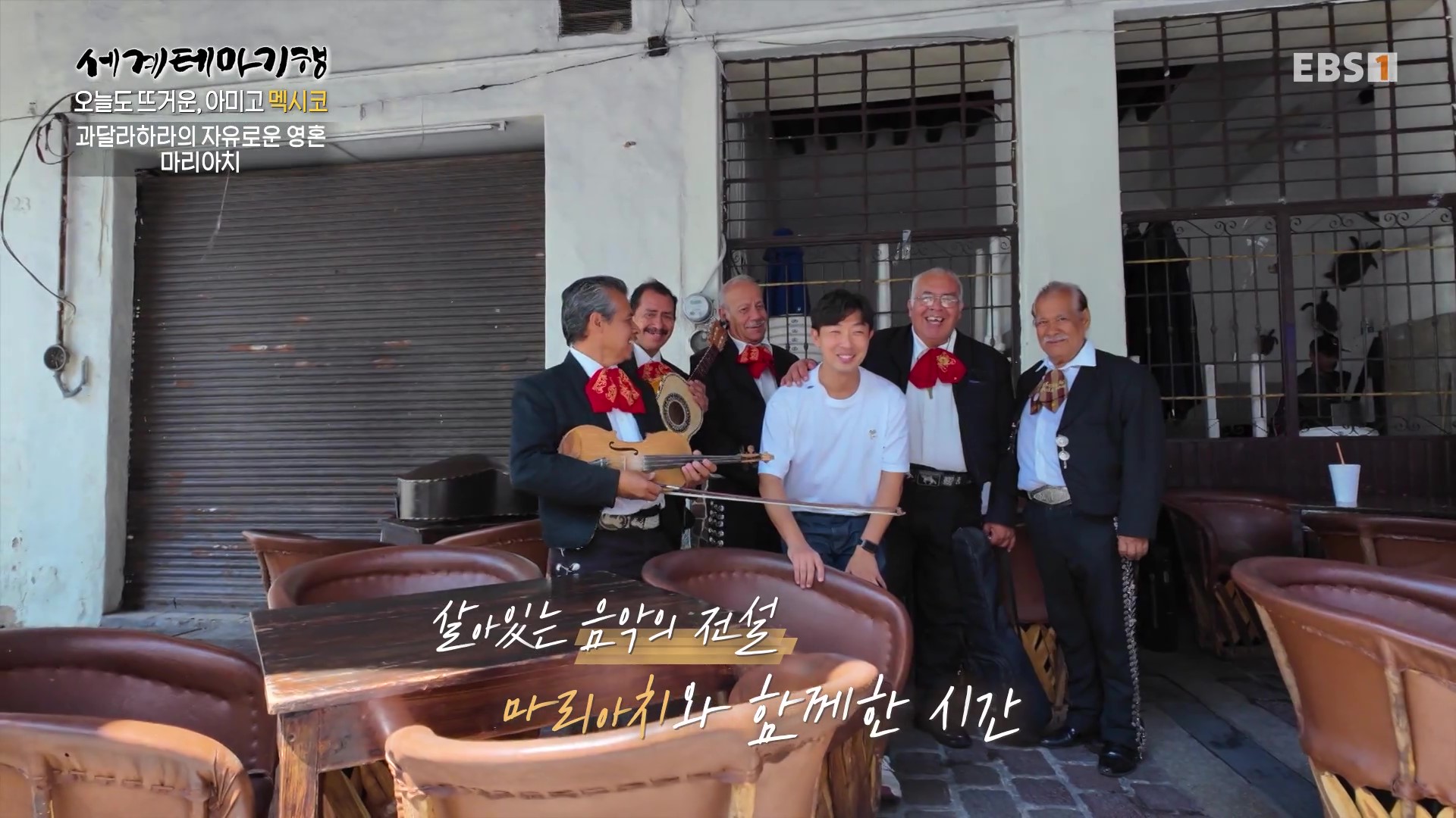 이곳 자유시장은 남미전체에서 가장 큰 실내시장이라고 하는데 1층은 매점, 2층은 음식점이 늘어서 있습니다. 얼큰한 멕시코식 국물요리(칼도)를 주문해 먹은 후 인근 골목으로 가면 악기를 파는 상점이 많이 보입니다. 마리아치는 멕시코 전통복장을 입은 소규모 밴드나 걸어 다니는 연주가들이 연주하는 멕시코 전통음악을 말합니다. 취재진도 마리아치의 연주를 감상합니다.