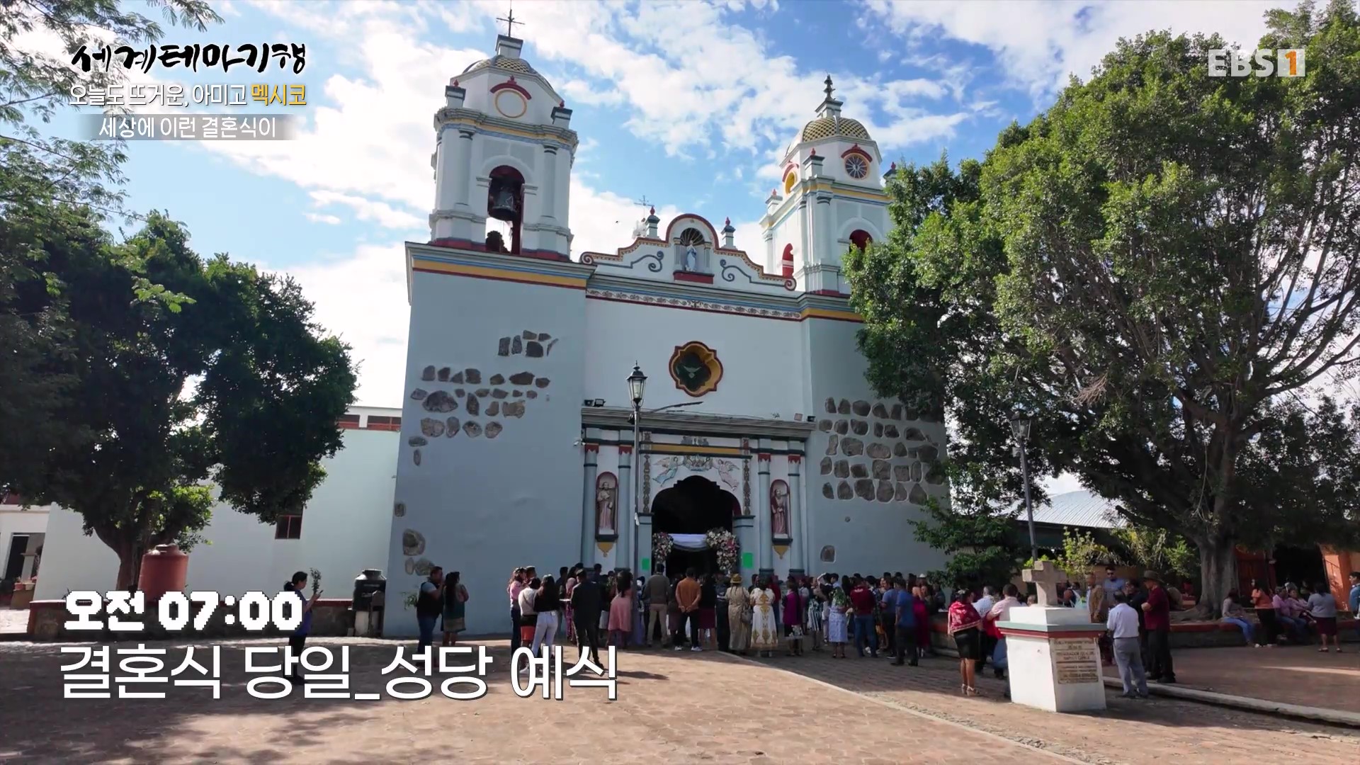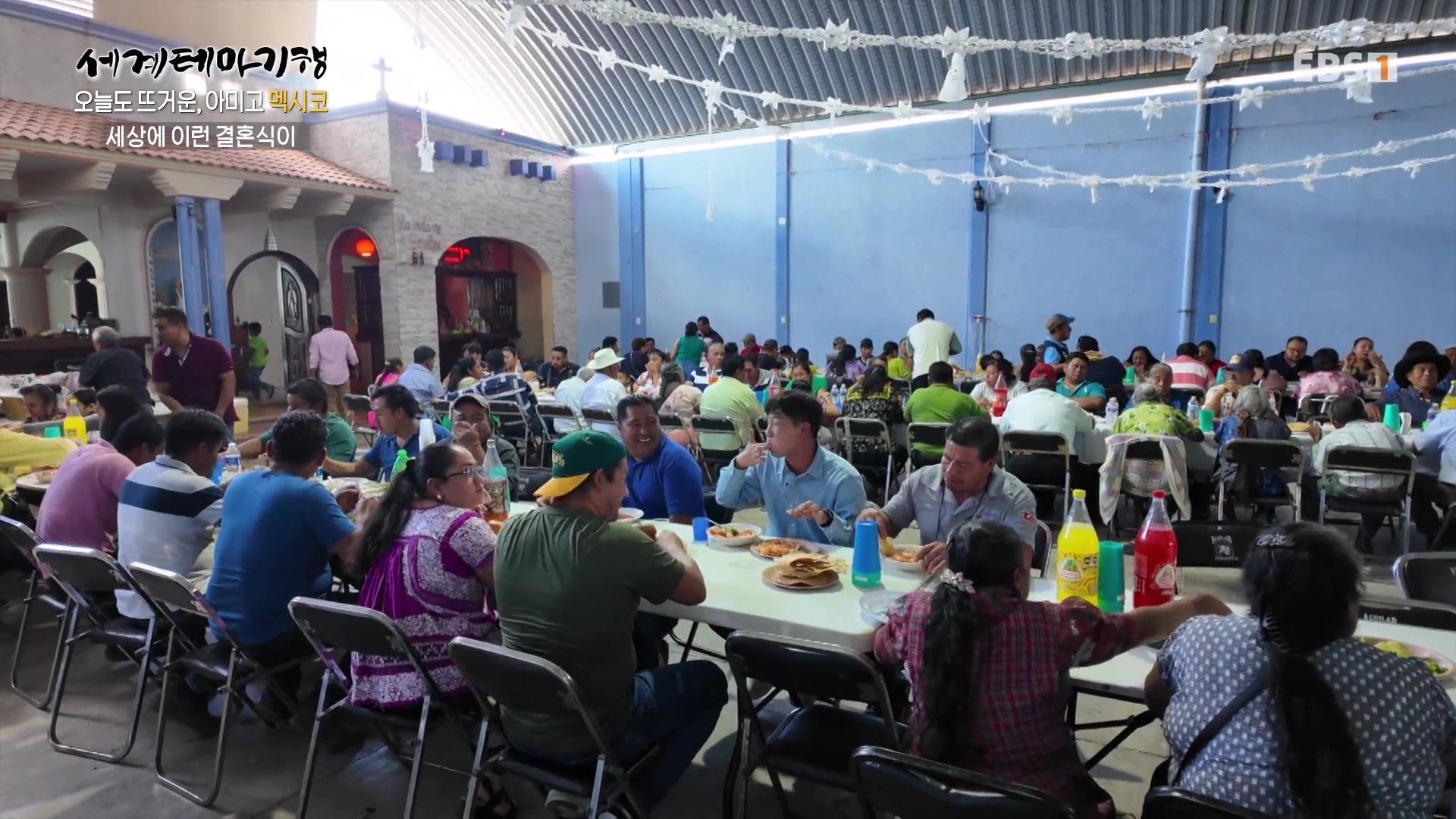 오코틀란이라는 작은 마을에서 전통결혼식 초대를 받았습니다. 멕시코인구의 70-80%가 가톨릭 신자여서 결혼식은 성당에서 개최됩니다. 결혼식을 마친 신알신부가 시장에 도착하자 상인들이 전부 이들의 결혼을 축하해줍니다. 피로연장에 참석하는 하객들은 저마다 물건을 지참했는데 바로 신랑신부에게 줄 선물입니다. 선물은 주로 피로연에 사용할 그릇과 음식 등입니다. 신랑신부의 대부와 대모는 결혼식 증인 겸 비용도 분담하는 후원자라고 하네요. 독주를 마시는 문화가 멕시코답군요.