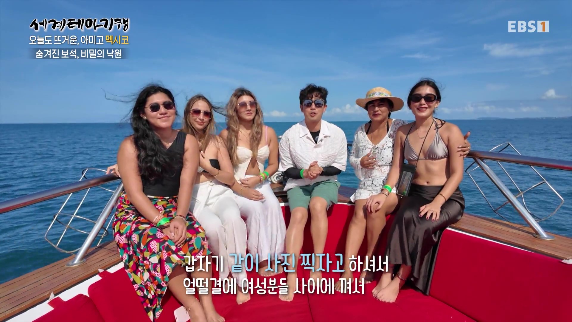 푸에르토 바야르타는 태평양 연안의 휴양도시로 거리에는 예술가들이 각종 공연을 합니다. 배를 타고 비밀의 장소로 갑니다. 진행자는 아리따운 여성들 사이에 끼어 기념사진을 찍습니다. 순간 바다거북이 두 마리가 나타나 유유히 헤엄칩니다. 거북이가 사라지자 이번에는 돌고래 두 마리가 등장합니다.