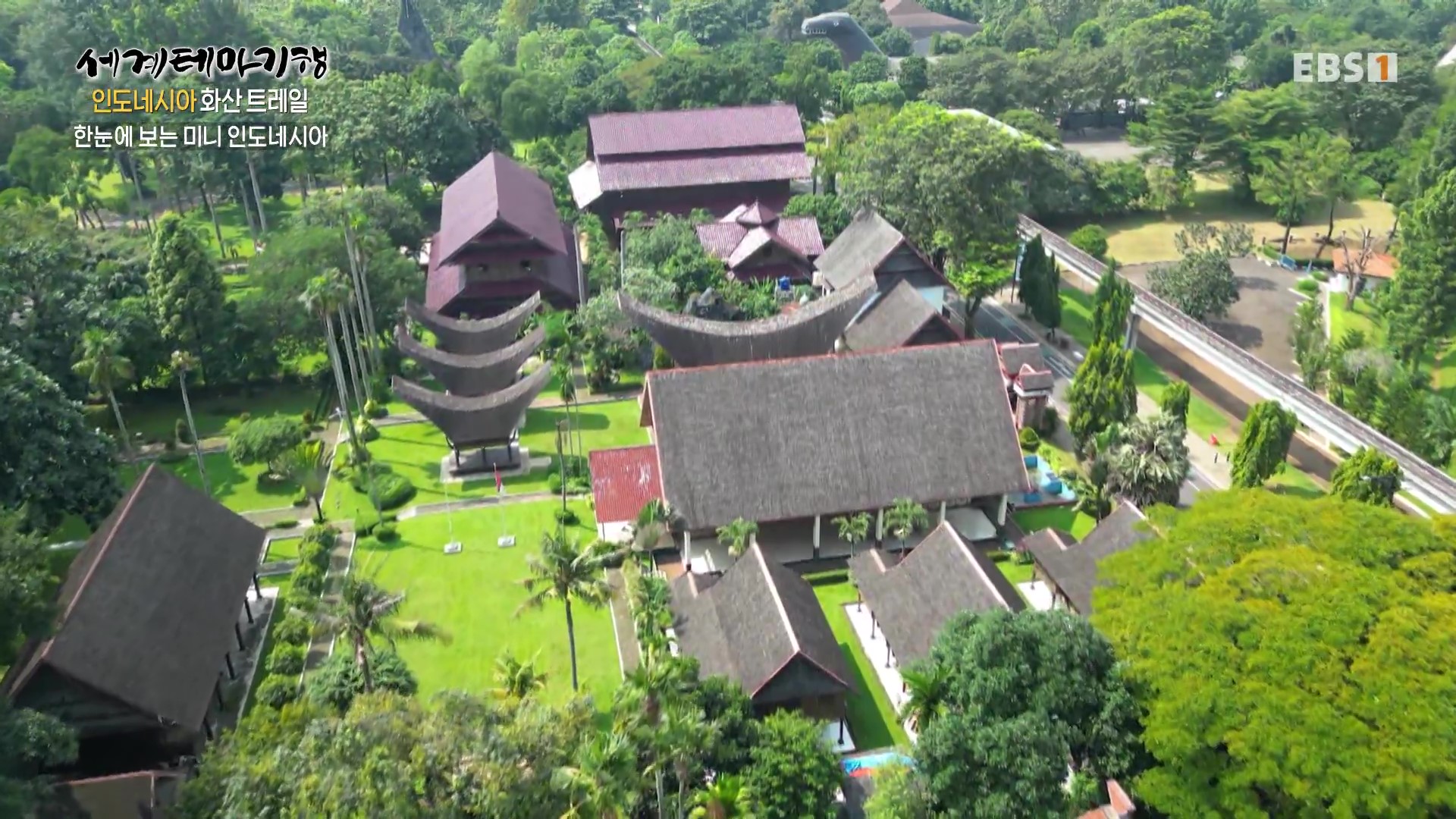 수도 자카르타의 라만 미니 인도네시아 인다는 인니 전역의 문화, 건축, 예술, 자연을 한 곳에 모아 놓은 문화.민속공원입니다. 케이블카를 타고 가면서 인도네시아 섬들의 축소판을 을 볼 수 있습니다. 이 공원은 우리 민속촌 같은 곳으로 인니 각 지역을 대표하는 건축물을 그대로 재현해 놓고 있습니다. 배를 뒤집어 놓은 모습의 지붕, 신분과 부를 상징하는 물소뿔을 걸어놓은 것도 특이합니다.