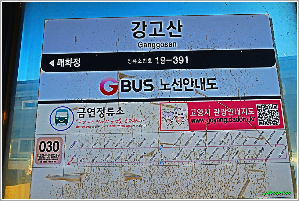 경의중앙선 강매역 3번 출구(3층)로 나와 고가도로인 강매교에서 좌측으로 갑니다. 강매교에는 북한산이 보이는 경관 해설판이 있는데 북한산 정상인 백운대, 북한산 주능산의 끝자락인 의상봉 등이 잘 조망됩니다. 여기서 강매로를 따라 20분 정도 걸어가면 강고산버스정류장이 있고 제방 위로 오르면 바로 코스모스 꽃밭이 보입니다.