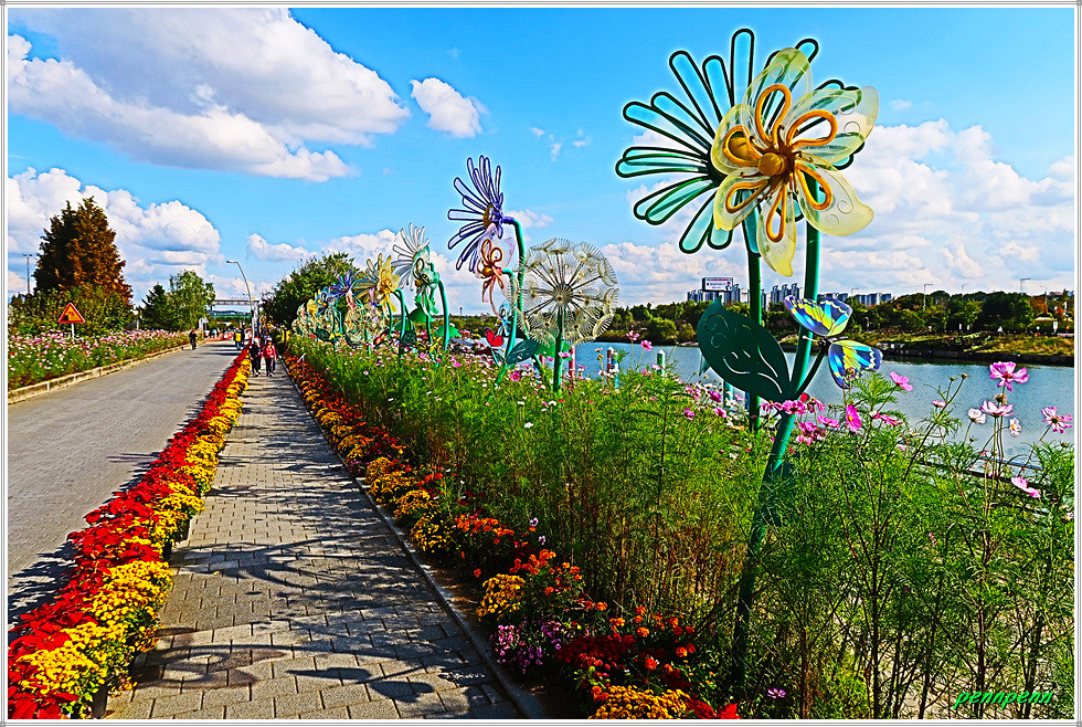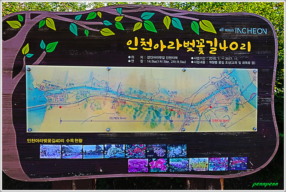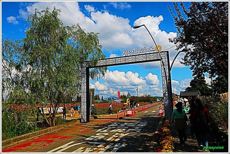 꽃터널과 경인아라뱃길 굴현나루 선착장을 지나 경인아라온 거리를 계속 걸어가면 계양 아라온을 알리는 대문이 보이는데 여기서 좌측은 2천만 송이 백일홍단지, 직진하면 가을꽃 축제가 열리는 수향원 구역입니다. 이번 제1부에서는 우선 백일홍 축제장을 소개하겠습니다.