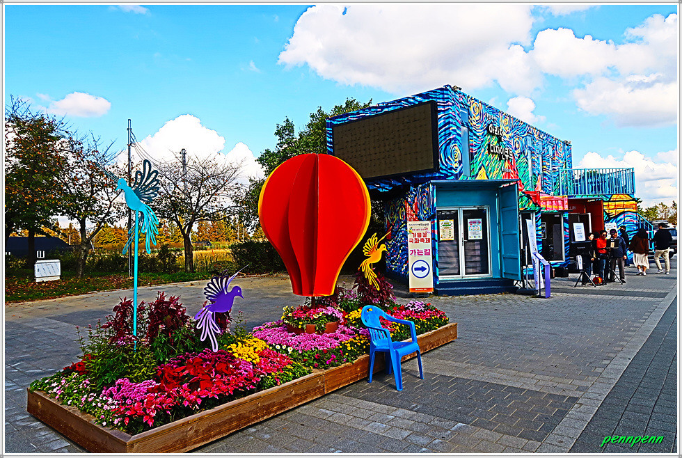 아라갤러리를 나와 안으로 들어가는 길목에도 화려한 꽃과 다양한 공예작품들로 조성한 화단을 볼 수 있으며, 야간이 되면 빛의 축제로 변신하는 꽃 조형물이 늘어서 있어 멋진 야경을 보고 싶은 마음이 솟구칩니다.