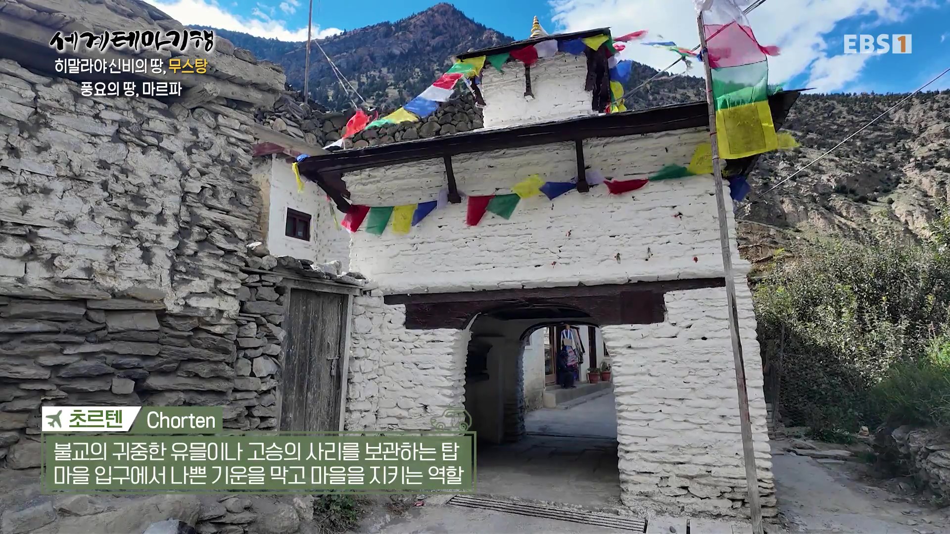 <EBS 세계테마기행>은 안방에 편안하게 앉아서 세계의 명소들을 체험할 수 있는 수준 높은 교양프로그램입니다. 각 방면에 걸쳐 다양한 지식을 가진 전문가가 출연해 실시하는 해설을 따라가노라면 실제로 해외여행을 하는 것 같은 착각에 빠지기도 합니다. 2025. 10. 20∼10. 23 기간 중 “세계테마기행, 히말라야 신비의 땅 무스탕”편이 방영되었습니다. 이번 여행은 권기봉 역사여행가가 안내합니다.