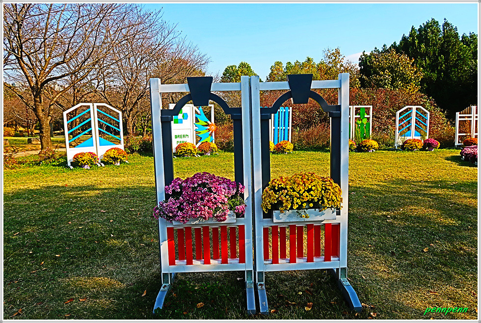 현재 이곳에서는 2025 드림파크 국화축제(2025. 10. 23∼11. 5)가 열리고 있습니다. 대중교통(지하철)을 이용할 경우 인천지하철 2호선 검암역(3번출구)에서 경인아라뱃길을 가로지르는 시천교를 건너 북쪽 한들사거리에서 좌측 백석사거리까지 가는데 천천히 걸어도 약 30분(거리 2.1km)정도 소요되므로 걷기를 좋아한다면 충분히 걸을 수 있을 것입니다.