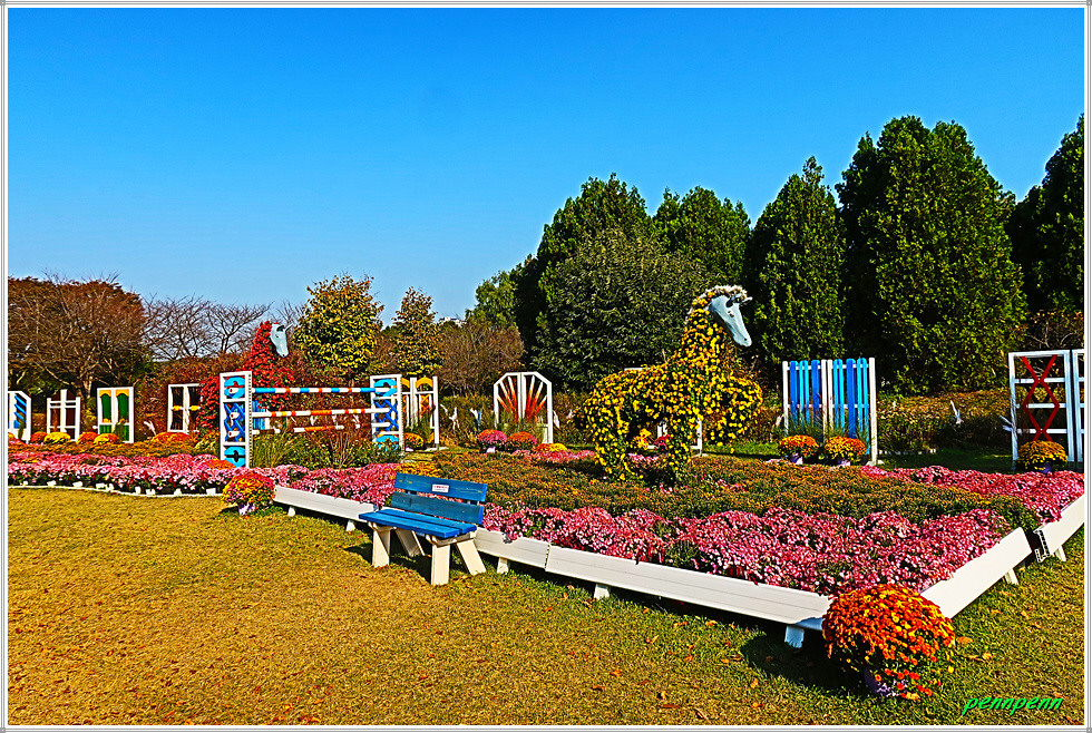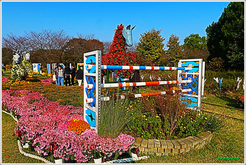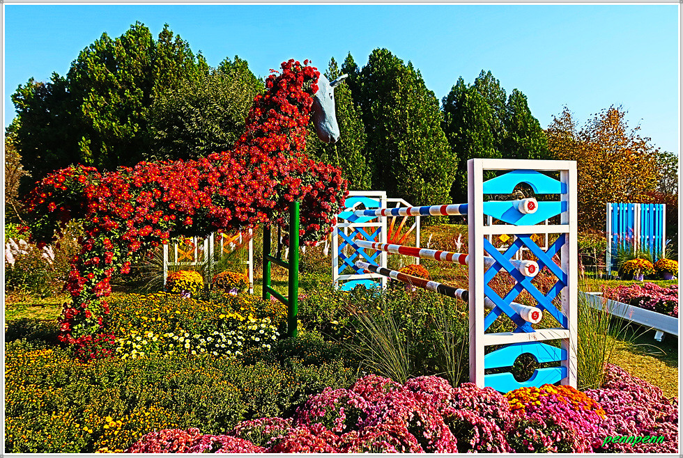 이제부터는 본격적으로 토피어리형식의 조형물이 많이 보입니다. 토피어리는 물이끼와 같은 식물을 여러 가지 모양으로 자르고 다듬어 보기 좋게 만들거나 그렇게 만들어진 작품을 말합니다. 영어(topiary)의 뜻은 나무이발술, 나무석공술, 관엽조각술이라고 해석합니다. 달구지를 끄는 소, 달리는 말, 근대5종 장애물넘기 경기에 참가한 말의 조형물은 토피어리 형식입니다.