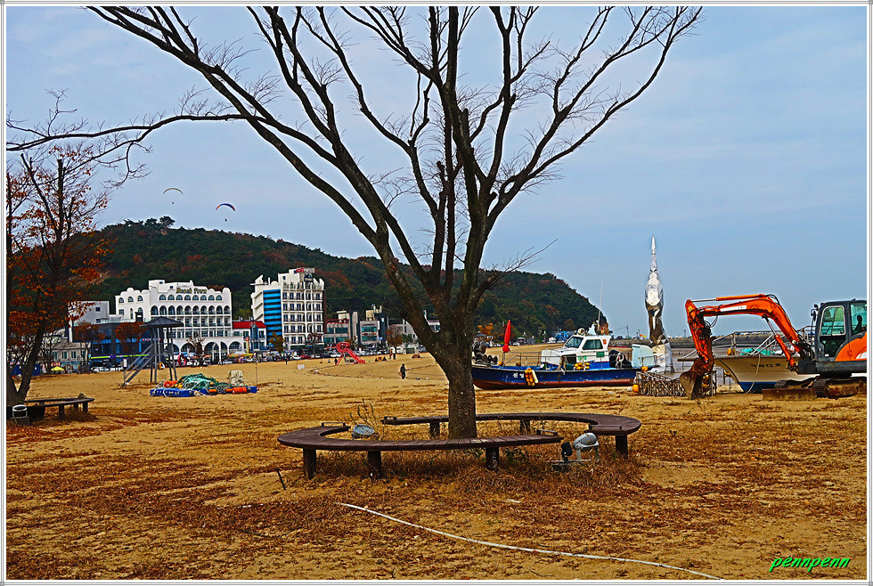 1990년대 왜목항은 석문면 교로리 최북단 대호 방조제 끝에 있는 작은 포구로 그 당시는 난지도를 오가는 연락선이 다니는 정도였습니다. 현재는 소형 어선들이 입출입하는 항구 기능보다는 왜목마을 해돋이와 왜목해수욕장으로 유명하며 매년 1월 1일은 해돋이 축제 행사가 열립니다. 다시 왜목해변으로 되돌아와 해변을 따라 걸으며 망중한을 보냅니다.