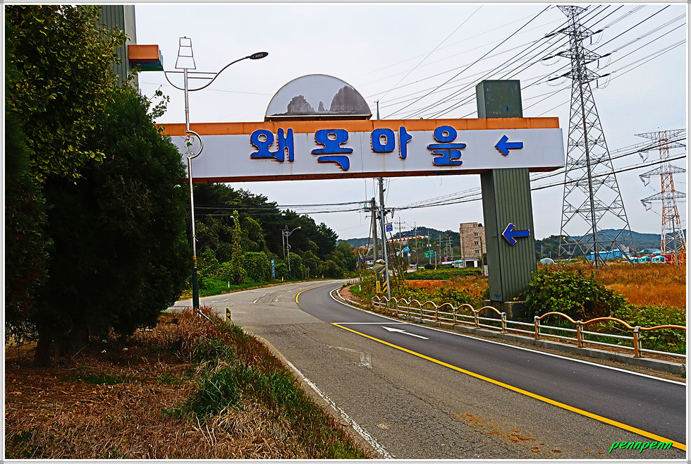 대호방조제와 석문면 삼봉사거리를 이어주는 615번 지방도로(대호만로)를 달리다 보면 왜목마을을 알리는 대형 대문형 아취가 도로를 가로지르며 서 있는데 여기서 동쪽으로 들어서면 왜목마을입니다. 마을 입구에는 왜목마을 방문자센터(공휴일은 휴무)가 있는데 전망대인 2층 옥상으로 올라가 바닷가의 왜목마을을 내려다봅니다.