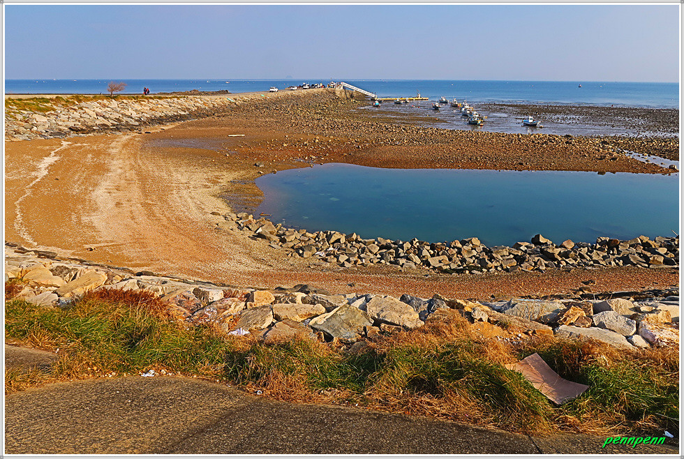 장고항교회를 지나 오르막길에서 좌측 소로로 진입합니다. 굴다리를 통과해 조금 더 가면 마섬 해변입니다. 마섬마을에는 새우와 횟집이 있군요. 633번 지방도로(석문방조제로)를 만나 동쪽으로 갑니다. 이제부터는 약 10km 길이의 석문방조제길을 가야합니다. 석문방조제는 당진시 석문면 장고항리와 송산면 가곡리를 잇는 길이 10.6km 방조제로서 서남해안 간척 농지종합개발 사업의 일환으로 당진시 석문면과 송산면 및 고대면 3개 면의 연안 일대에 안정적인 영농기반을 조성하기 위한 것이며 1995년 준공되었습니다.