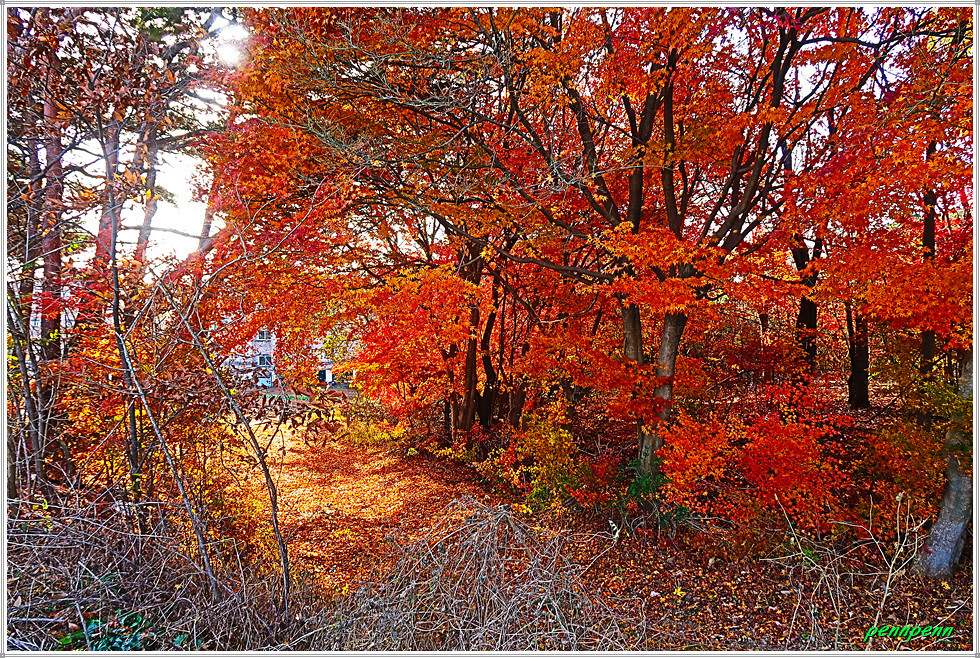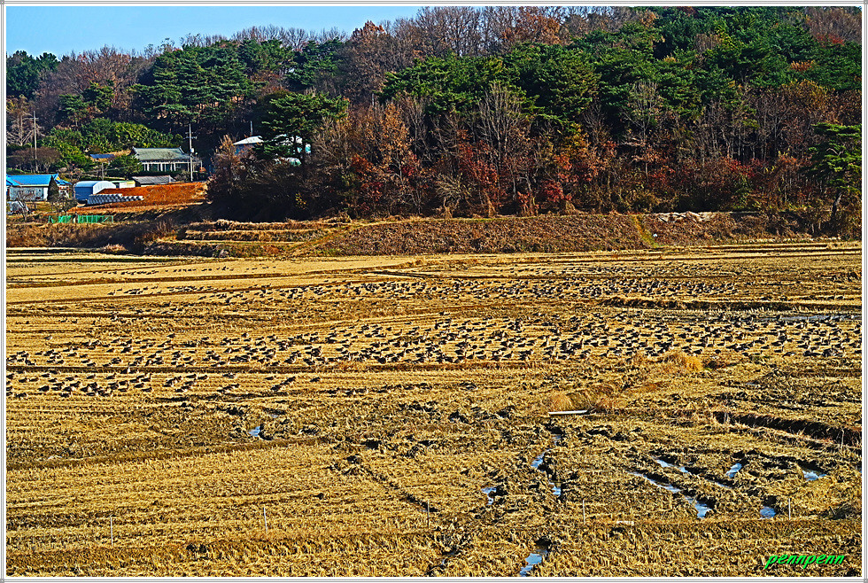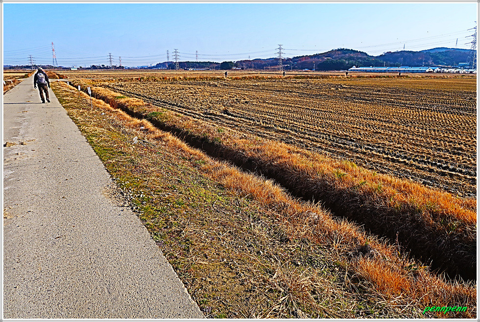 이곳은 서해대교 서단이지만 숲으로 인해 서해대교의 모습은 보이지 않네요. 오늘 15km를 걷는데 4시간 남짓 소요되었습니다. 길을 걷는 내내 포장된 도로만을 걸어 발바닥으로 전해지는 촉감이 매우 딱딱했으며 가을 추수를 끝낸 들판은 상당히 황량했습니다. 다만 일제강점기 작가인 심훈이 말년에 상록수를 집필한 초가인 필경사와 그를 기리는 심훈기념관을 만난 것은 망외의 소득입니다.