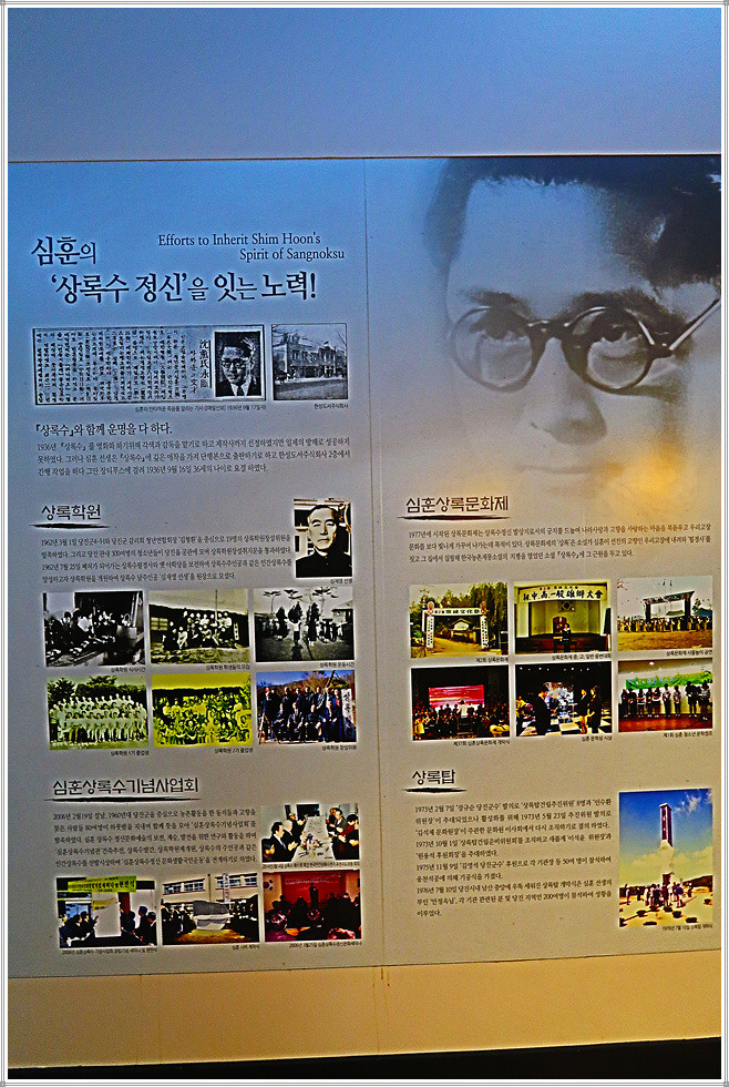 필경사 경내에는 상록수의 주인공(박동혁, 채영신)을 조형물로 제작해 전시하고 있는데 필경사는 보수공사 중이어서 가옥 내부를 볼 수 없음이 유감이었습니다. 이웃한 심훈기념관은 일제강점기 소설가 겸 시인 및 영화인이었던 심훈 선생의 항일 및 계몽정신을 후세에 선양하고자 건립한 기념관입니다. 기념관은 민족의식의 태동, 저항의 불꽃, 희망의 빛, 그날이 오면, 상록수 및 계몽운동의 씨앗으로 구성되어 있으며, 기념관 옥상에는 대표작인 “그날이 오면”의 시비와 선생의 동상이 세워져 있습니다.