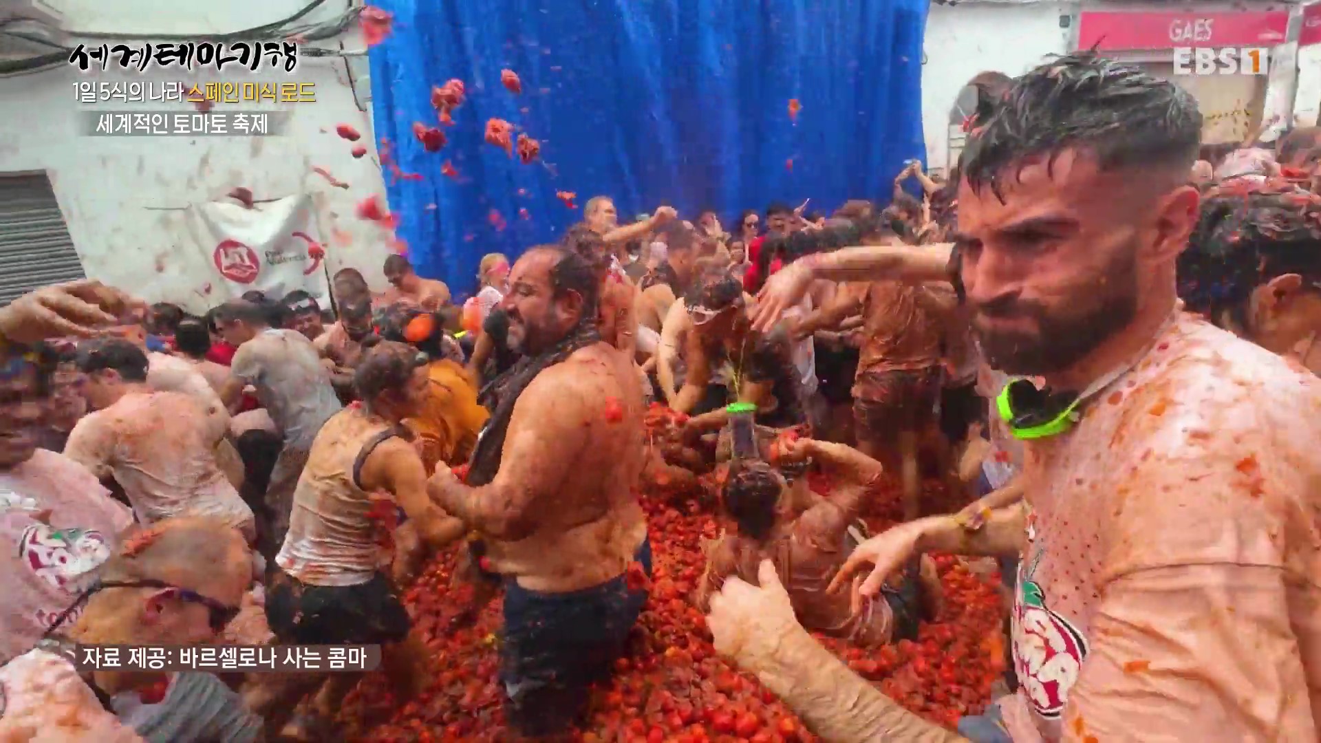 부뇰은 스페인 동부 발렌시아주에 있는 소도시로 매년 8월 세계적인 토마토축제로 유명합니다. 축제 전날은 이곳 주민들이 가족과 함께 전통음식을 가지고 나와 거리에서 먹으며 즐깁니다. 축제날 축제장으로 향하는 길목에는 긴 줄이 늘어서 있습니다. 취재팀은 토마토트럭을 섭외했는데 1인당 비용이 무려 121만원입니다.