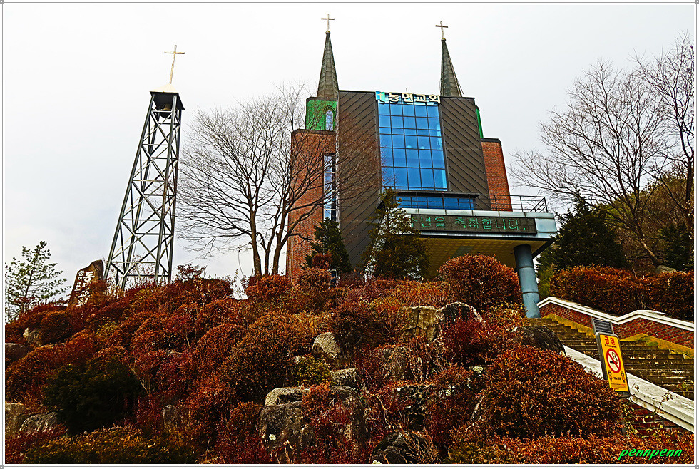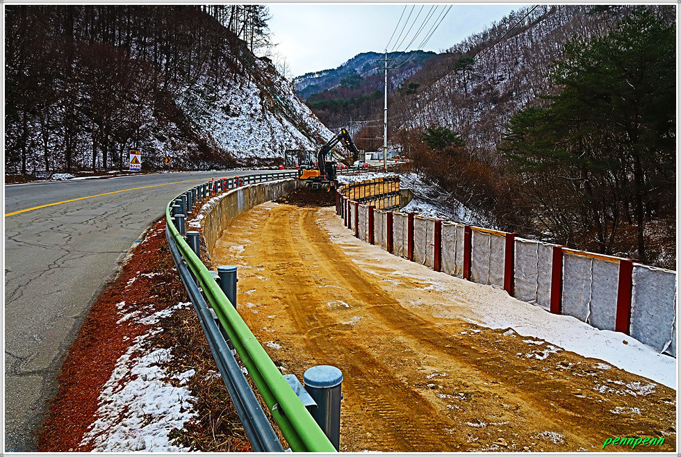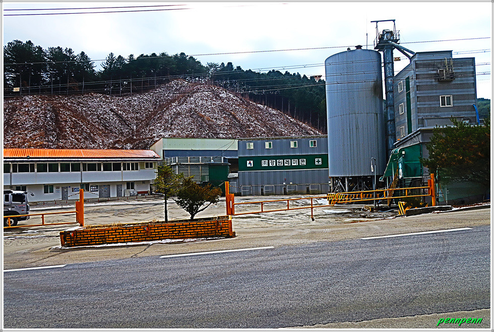도로변에 지게차를 동원해 무슨 작업을 하고 있어 가까이 가서 보니 제설용 소금을 정리작업을 하고 있습니다. 멀리 대암산 능선이 보이는군요. 도사삼거리에서 좌측 31번 국도를 따라 갑니다. 방산읍을 뒤로하고 동면으로 들어서서 강원레미콘 공장을 지나갑니다. 밭에서는 무엇을 재배하는지 모르겠습니다. 농촌건강 장수마을인 덕곡2리 마을입구를 뒤로하고 로터리의 동면교회를 지나가는데 진행방향으로 대암산 능선이 하얀 눈을 머금고 있는 모습입니다.