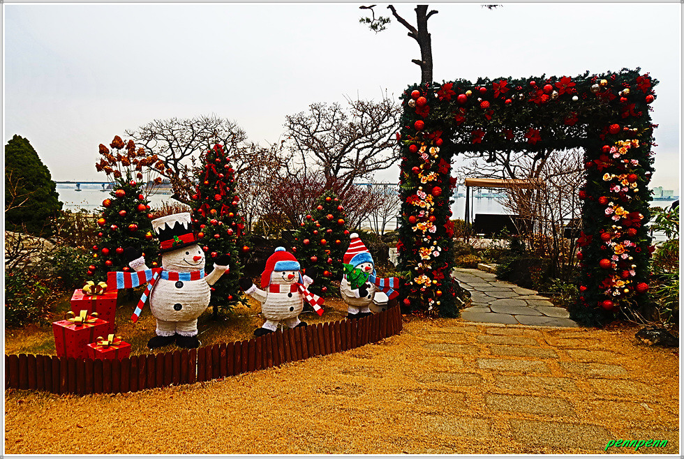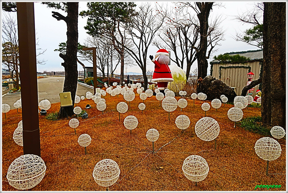 음섬포구에서 방조제를 따라 북쪽으로 가면 매산해안공원입니다. 당진시 신평면 매산리 소재 매산해안공원은 당진에서 가볼 만한 노을명소입니다. 그런데 이곳에는 해어름 레스토랑과 베이커리가 있는데 70여종의 수목과 350여종의 초화류가 있어 사계(四季)의 아름다운 변화와 여유로움을 선물하는 공간입니다. 특히 크리스마스를 앞두고 이를 주제로 한 다양한 조형물이 조성되어 연말의 분위기를 물씬 풍깁니다.