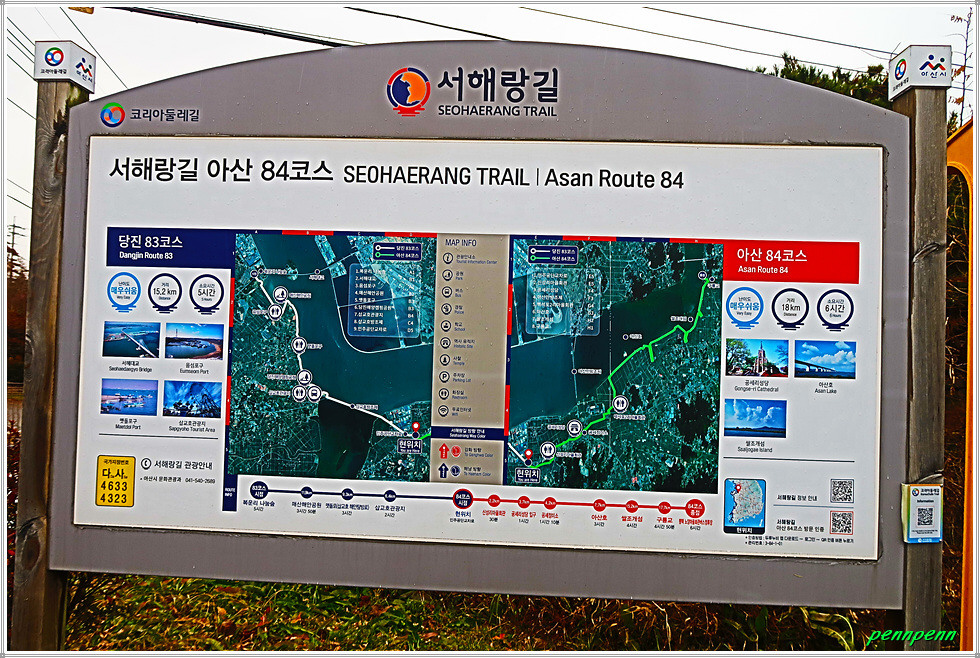 오늘 13.5km를 걷는데 4시간 15분이 소요되었습니다. 하루종일 흐린 날씨에 겨울비가 부슬부슬 내려 한손으로 우산을 들고 다른 손으로 사진을 찍으려니 매우 불편하더군요. 삽교천방조제와 자전거전용도로를 걷기는 참 지루했지만 매산해안공원과 삽교호바다공원은 사진을 찍기가 좋아 발걸음이 가벼웠습니다. 이제 당진코스가 끝나고 다음에는 아산코스가 이어집니다.