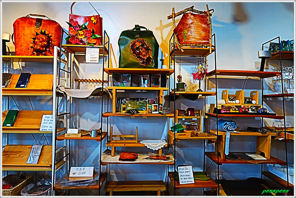 우리 일행은 갗누리공방카페에 들러 맛난 커피를 마시며 망중한(忙中閑)을 즐깁니다. 공방카페라는 이름처럼 카페의 한쪽은 공방인데 수작업으로 만든 각종 공예품을 전시판매하고 있습니다. 현재 걷는 이 길은 삽교호 해안탐방로로군요. 서해범선횟집을 지나면 멀리 삽교호 관광지 놀이시설인 대관람차가 우뚝합니다. 지나는 길목에는 하트처럼 보이는 조형물이 있는데 다른 각도에서 보면 진주를 머금은 조개 같기도 합니다. 물고기 조형물도 만납니다.