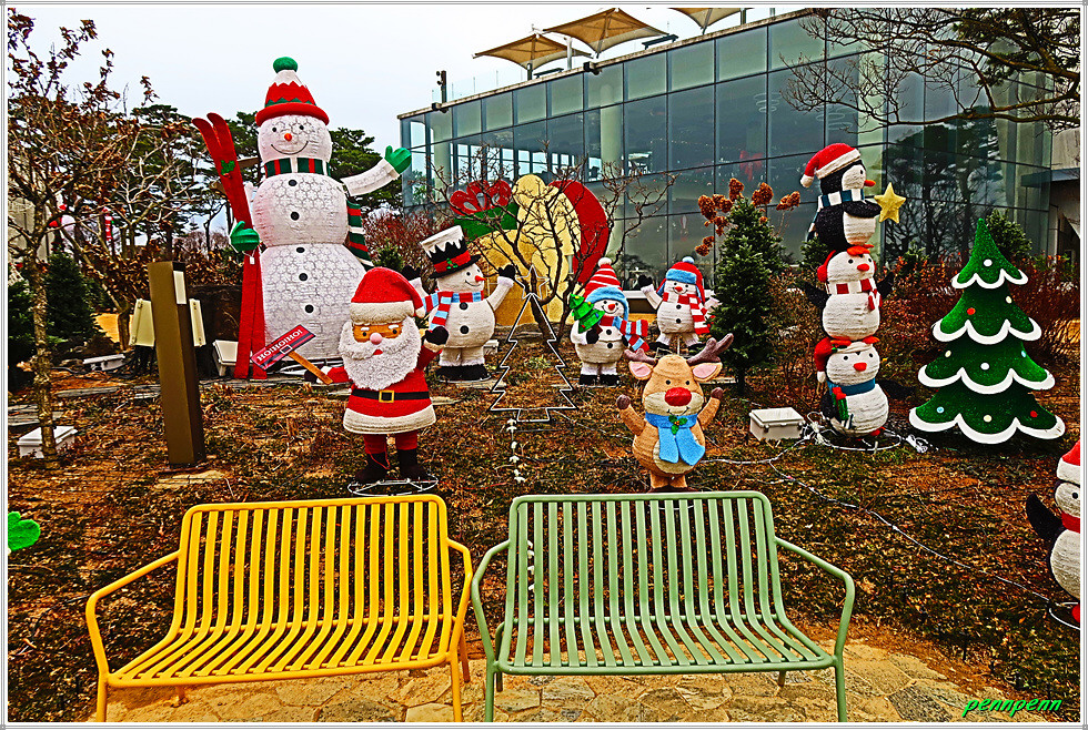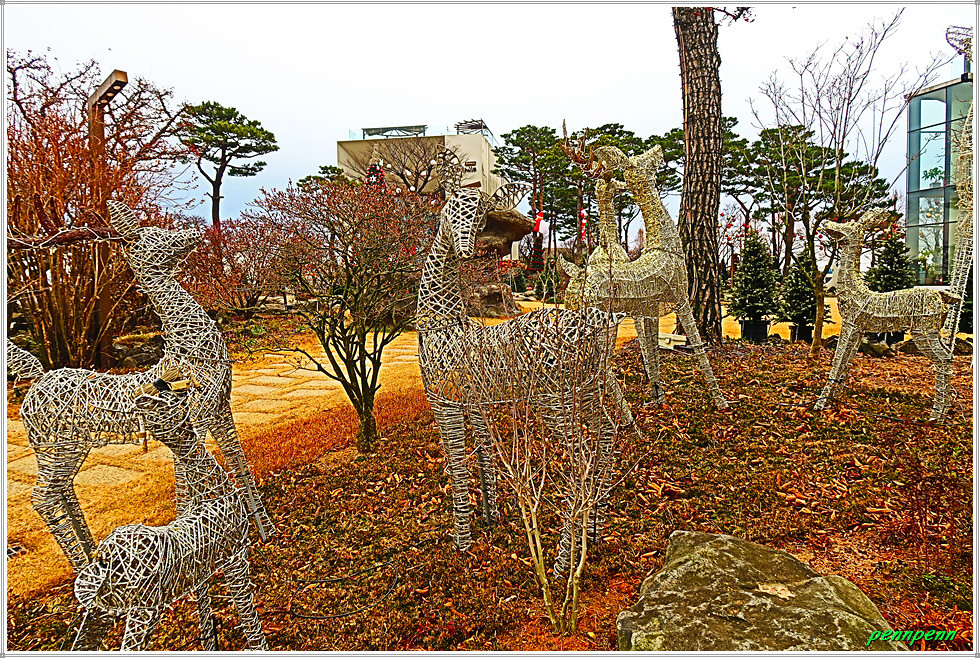 이곳 공원에는 해어름 레스토랑과 베이커리가 있는데 70여종의 수목과 350여종의 초화류가 있어 사계(四季)의 아름다운 변화와 여유로움을 선물하는 공간입니다. 특히 크리스마스를 앞두고 이를 주제로 한 다양한 조형물이 조성되어 연말의 분위기를 물씬 풍깁니다. 필자는 서해랑길 83코스를 답사하면서 이곳을 경유하게 되었습니다. 여기서는 다른 각도에서 서해대교를 바라볼 수 있습니다.