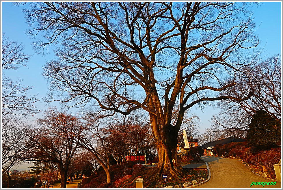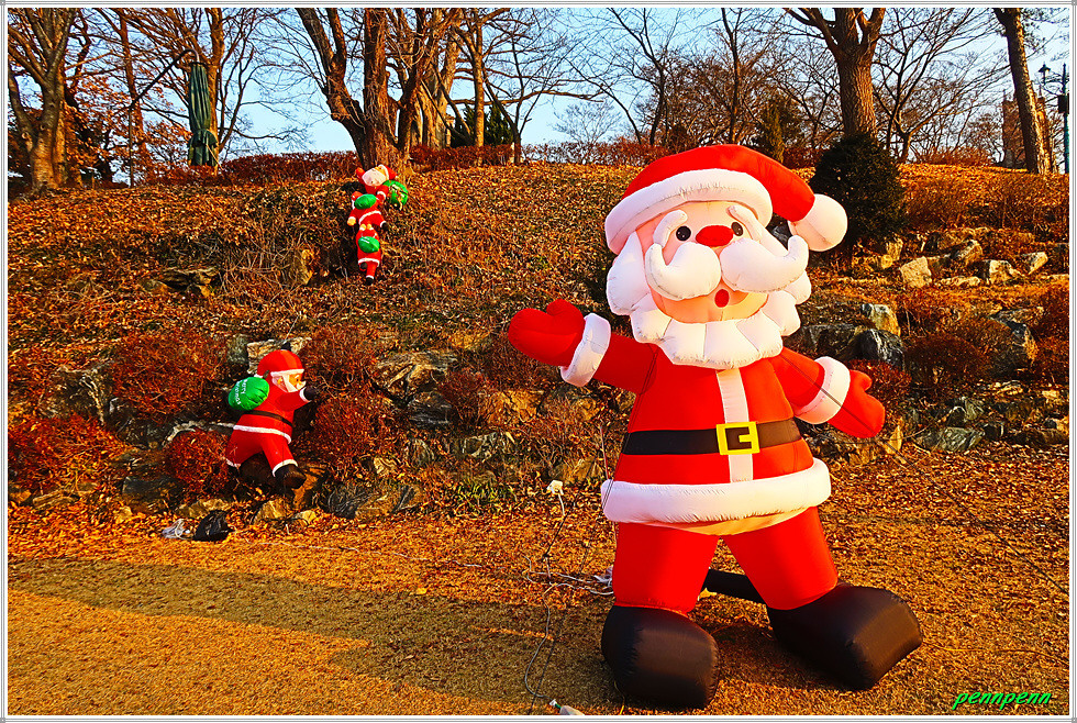 안으로 들어서면 도로 좌측에 수령 300여년의 보호수 느티나무 한그루가 방문객을 맞아줍니다. 이쪽 잔디밭에는 큼직한 산타할아버지가 오가는 행인들에게 손을 흔들고 있고 그 안쪽에는 순록이 2대의 썰매를 끌고 나갈 채비를 하고 있습니다. 예수성심상 뒤에는 피정의 집이 있군요.