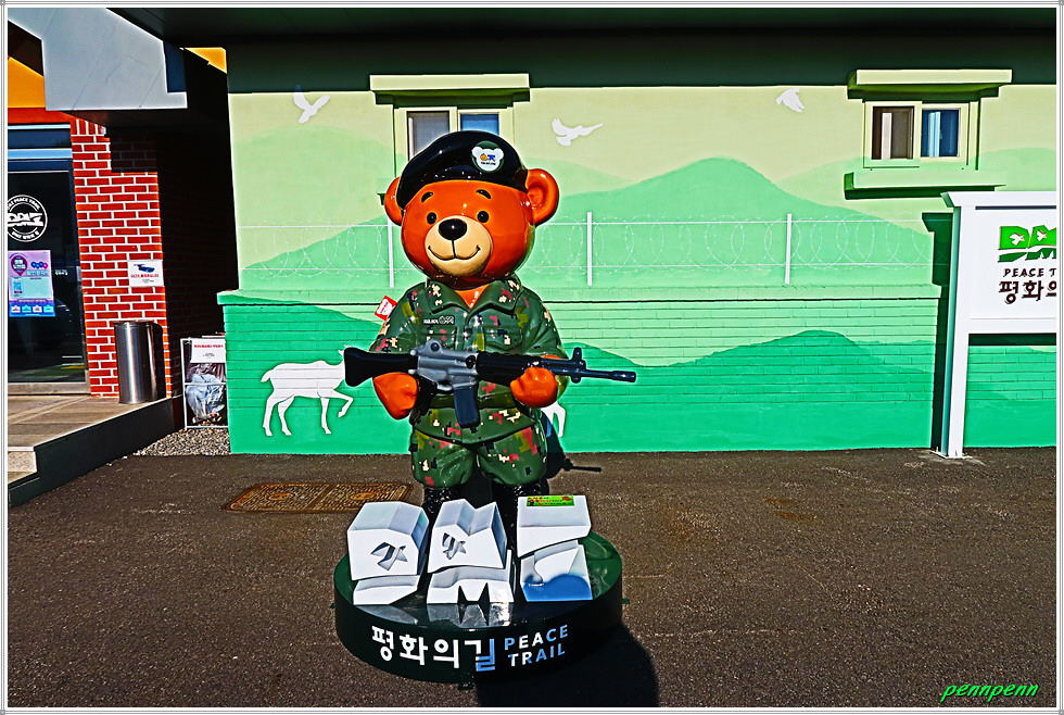 평촌교를 건넌 우리는 우측의 강변을 따라 갑니다. 인북천 강변을 걷다가 심적교에서 좌측으로 방행을 돌려 동쪽으로 갑니다. 삼거리에는 서화리 주민대피시설이 반듯하군요. 목적지로 가는 방향에는 피스빌리지(Peace Village)라는 이정표가 계속됩니다. 서화2리 마을표석이 있는 곳에서 좌측으로 진입하니 평화의 길 방문자센터 옆에 평화의 길 종합안내도 및 QR인증코드가 있습니다.